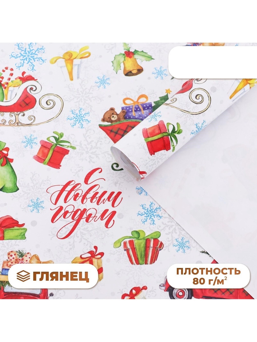 Бумага упаковочная новогодняя глянцевая «с новым годом!», 70 100 см, 1 лист. Глянцевая упаковочная бумага подойдет для оформления подарков, цветов, книг и много другого. Подарочная бумага способна превратить даже самый маленький сувенир в настоящий большой подарок! Ваш презент не останется незаметным. Стильный и модный тренд в декоре и упаковке. Она идеально подходит для аккуратной упаковки подарков. Дайте волю своему творческому порыву и украсьте ею декорации, стенды, витрины, а также найдите лишний повод, чтобы вручить подарок близкому человеку, красиво упаковав его в такую бумагу. Её оригинальные принты - отличное «продолжение» стильного подарка, которое способно поднять настроение любому виновнику торжества. Размер, м:0.7 х 1|Набор:Нет|Цвет:Белый|Плотность, г/м :80|Тематика:Рождественская|Тематика:Новогодняя|Рисунок:Да|Символ года:Нет|Тематика праздника:Рождество|Тематика праздника:Новый год|Материал:Бумага|Особенность:С рисунком|Особенность:Глянцевый(ая)|Вид:В листах|Тип листа:Односторонний|Особенность крафта:С рисунком|Страна:Россия  развернуть описание ▼
