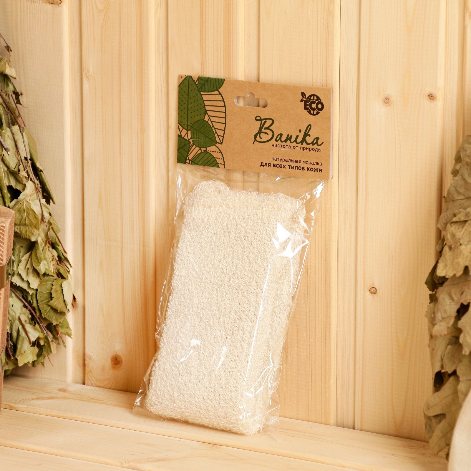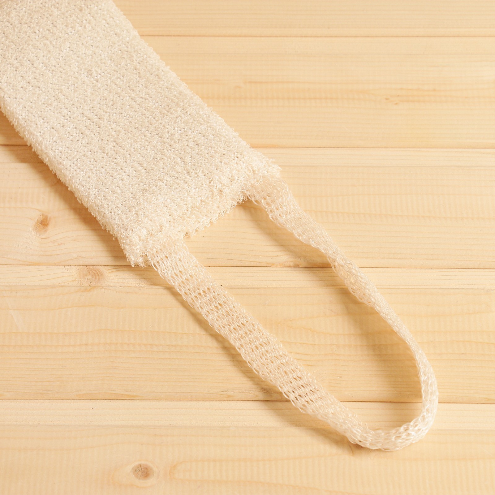 Мочалка банная с ручками "длинная", белая, 35х9см, хлопок, поролон