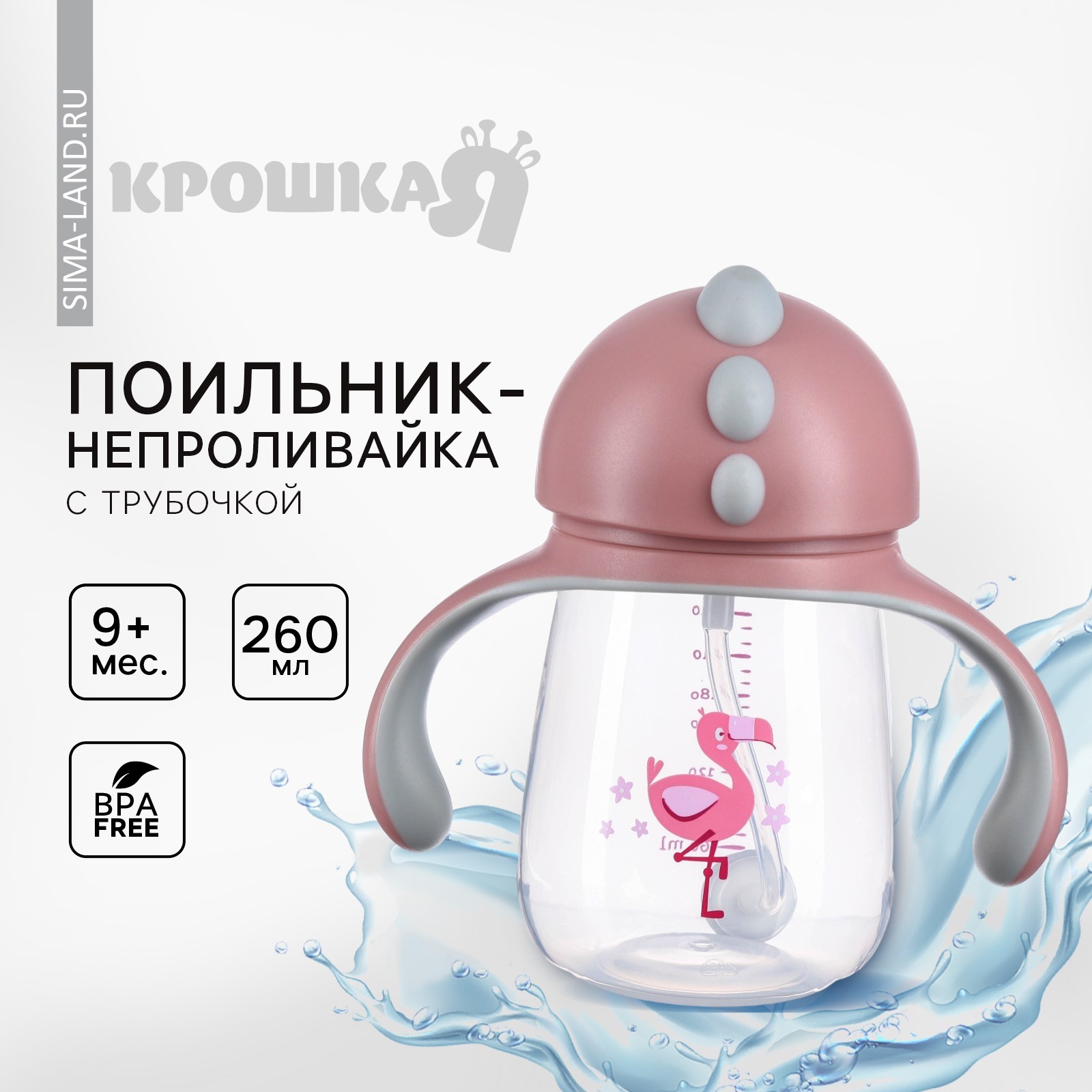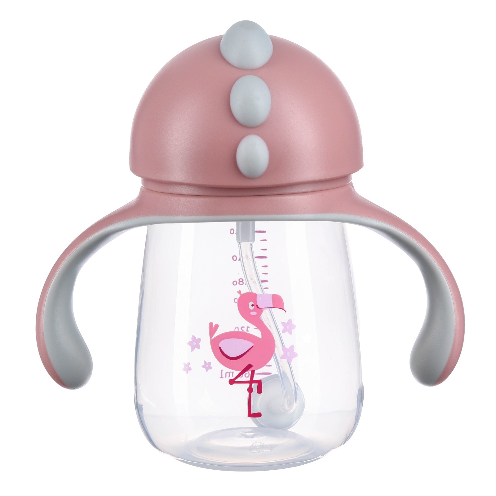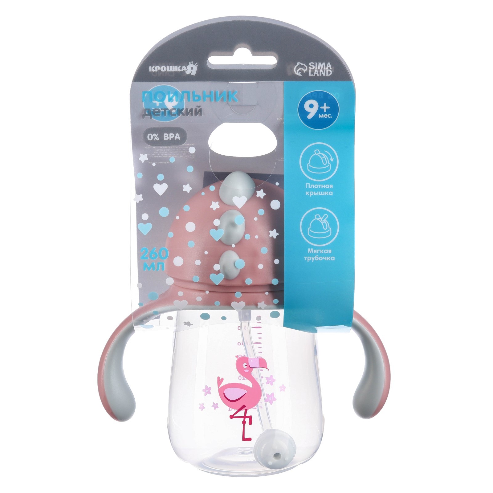 Поильник - непроливайка детский с силиконовой трубочкой «фламинго», 260 мл., с ручками, цвет розовый