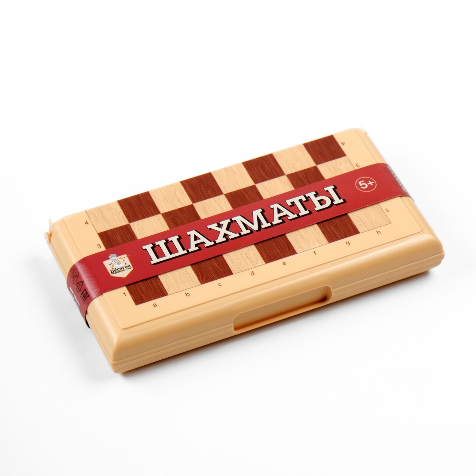 Шахматы настольные, 21 х 21 см, доска и фигуры пластик, король h-3.8 см, d-1.5 см. Развивайте стратегическое мышление и учитесь думать на несколько шагов вперёд с классической игрой всех времён. Шахматы в компактной коричневой коробке отличаются простотой дизайна и удобством хранения. Играйте дома или возьмите набор шахмат с собой в дорогу! Состав набора: игровая доска / чемоданчик для хранения коричневого цвета (21 х 10, 5 см – в сложенном виде, 21 х 21 см – в разложенном виде)комплект шахмат – 32 шт. (диаметр – 1, 5 см, высота – до 3, 8 см)Чемоданчик для хранения изготовлен из пластика, имеет скругленную форму и защёлкивающийся замочек. Коробочка легко трансформируется в устойчивую шахматную доску, стилизованную под дерево коричневого цвета. Шахматные фигуры также изготовлены из пластика, благодаря чему имеют очень лёгкий вес – такие фигуры будет удобно передвигать детям, пожилым людям и др. Шахматы подойдут в качестве подарка брату, мужу, папе, другу на 23 февраля, день рождения, новый год или любой другой праздник. Размер, см: 21 х 21 Материал: Пластик Вид: Шахматы (доска + фигуры) Особенности: Без особенностей Температурное ограничение: Нет  развернуть описание ▼