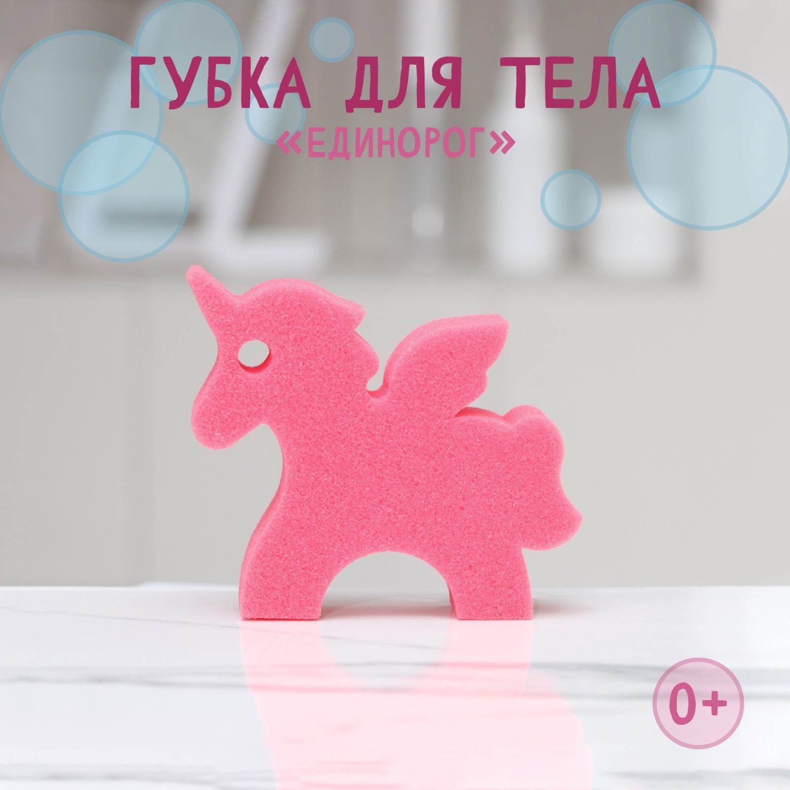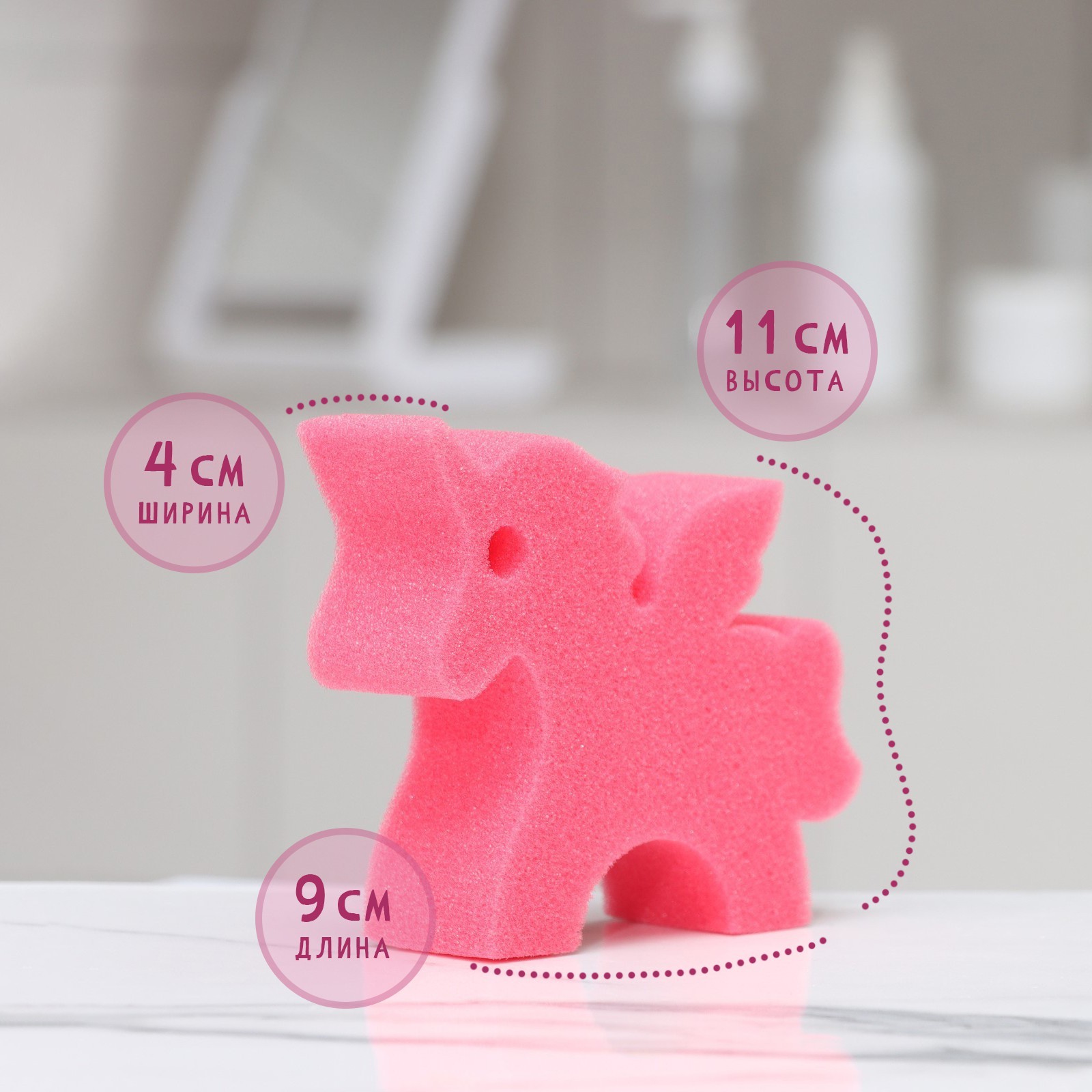 Губка для тела детская «единорог», 11x9,5x4 см, цвет розовый