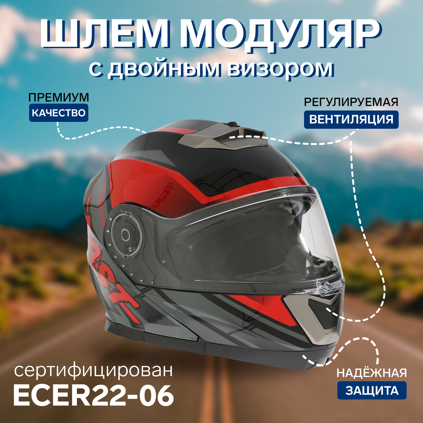 Шлем модуляр с двумя визорами, размер Xxl (61), модель - Bld-160e, черно-красный