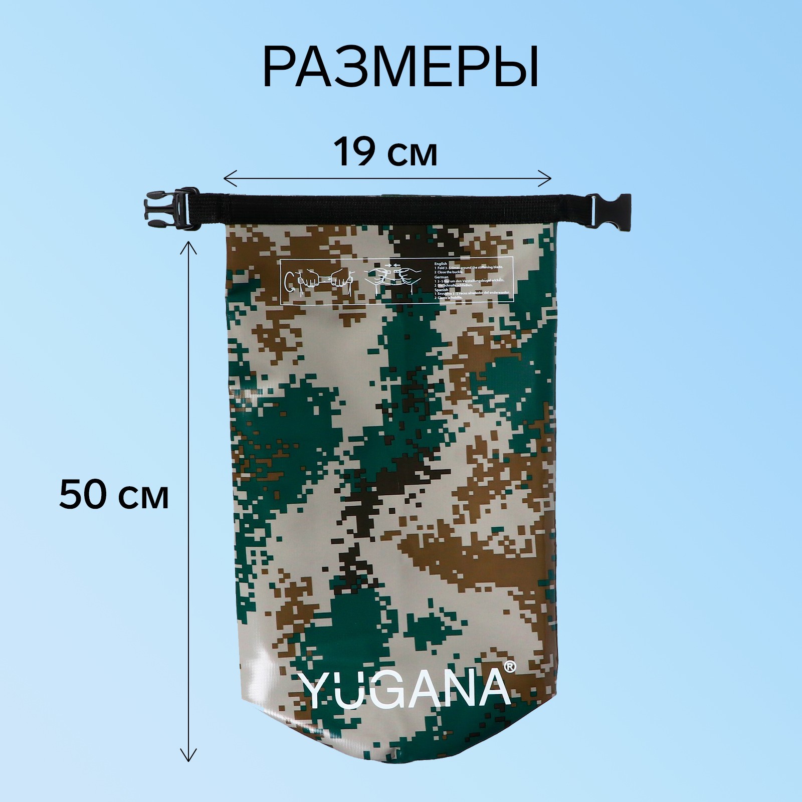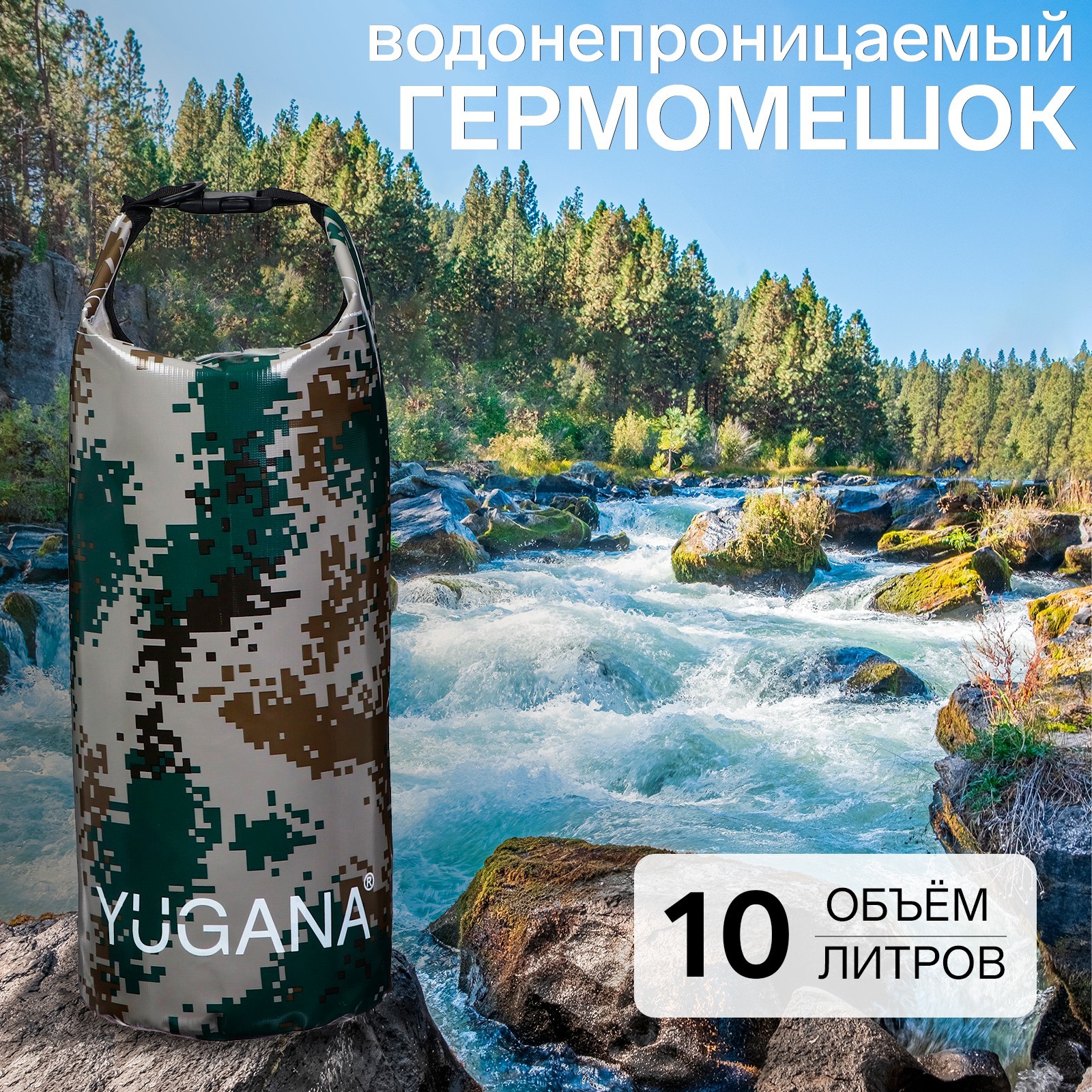 Гермомешок Yugana, пвх, водонепроницаемый 10 литров, один ремень, камуфляж