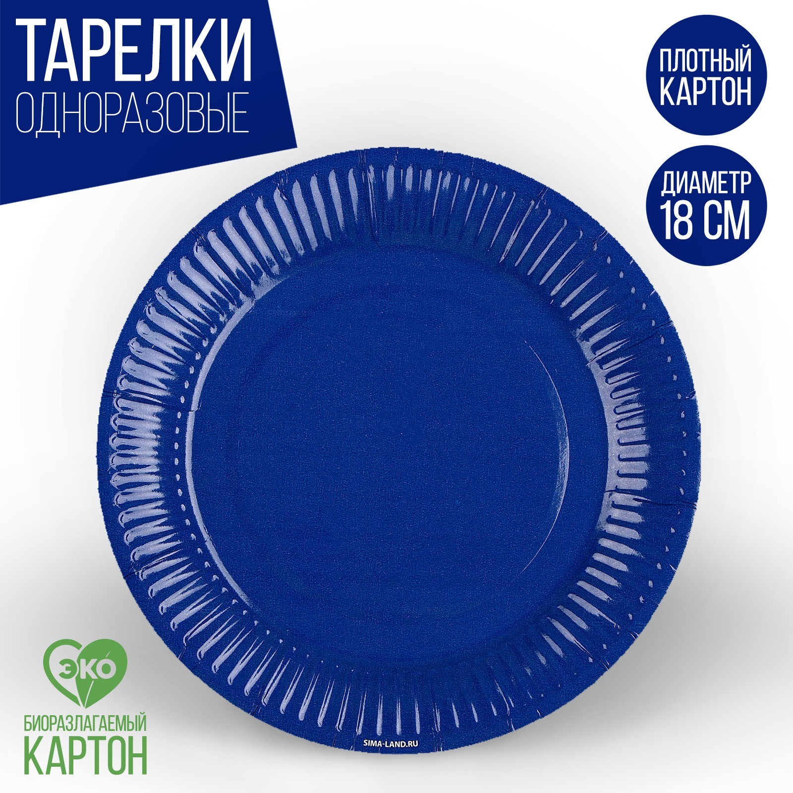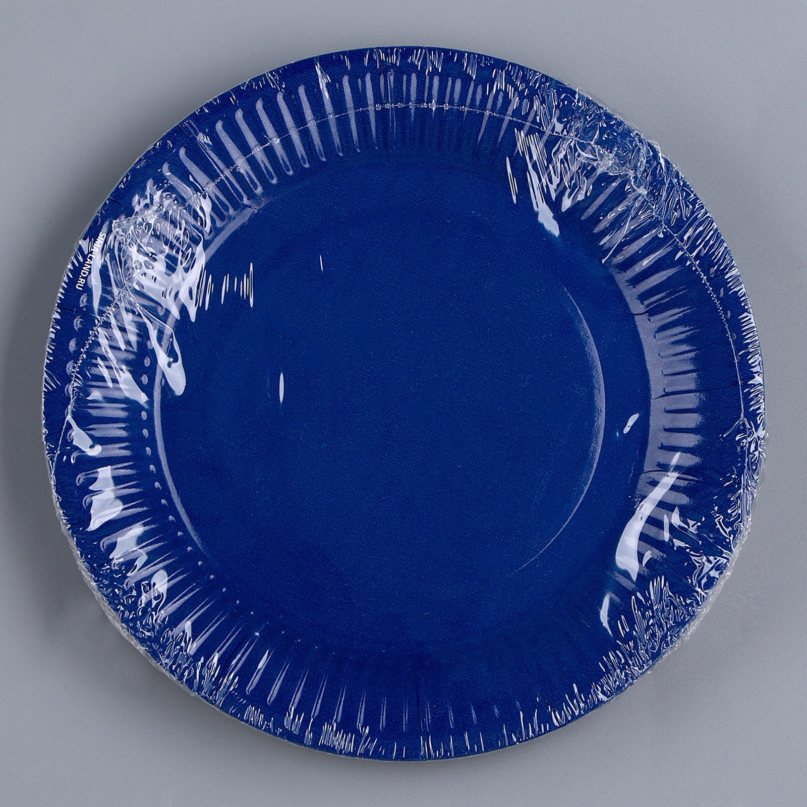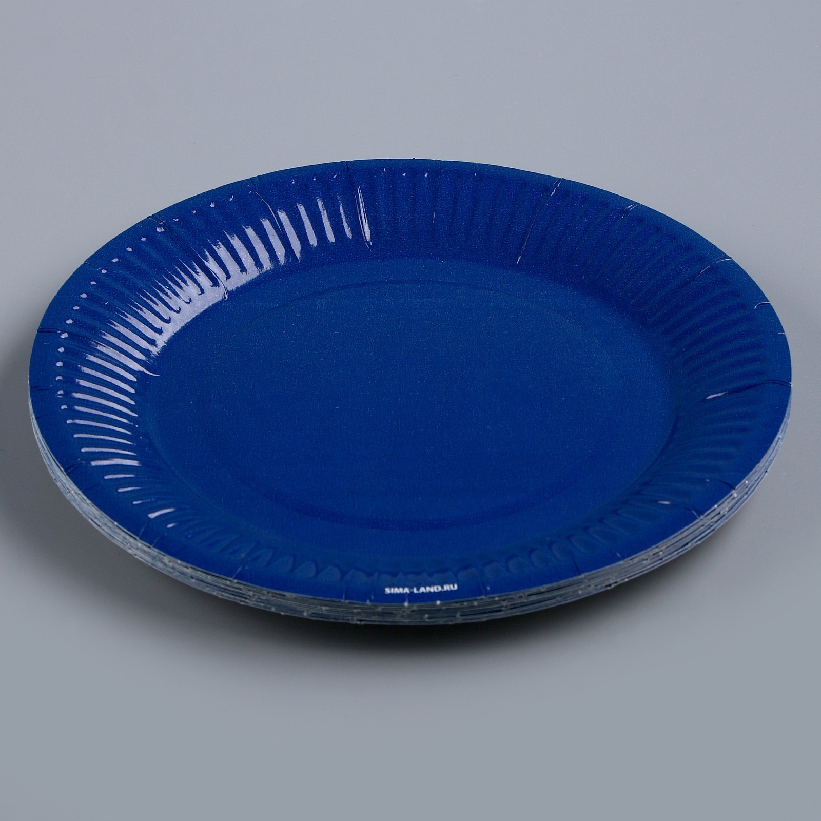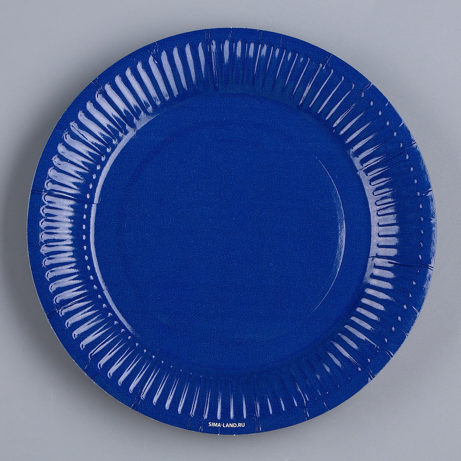 Одноразовая посуда: тарелка бумажная «синий», однотонная, 18 см