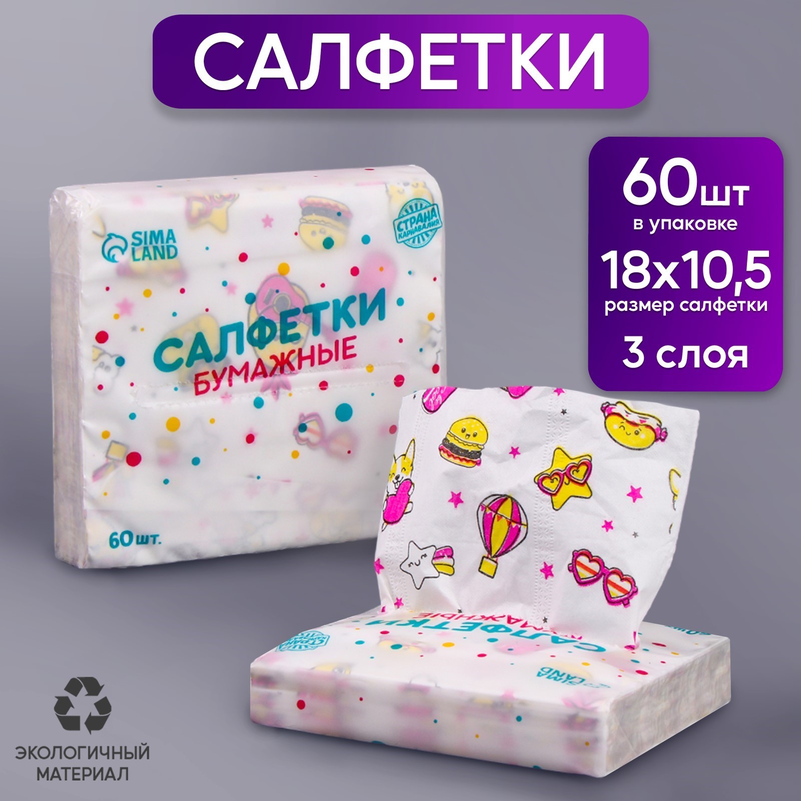 Салфетки бумажные "стикер",60 шт в пакете, 3 слоя