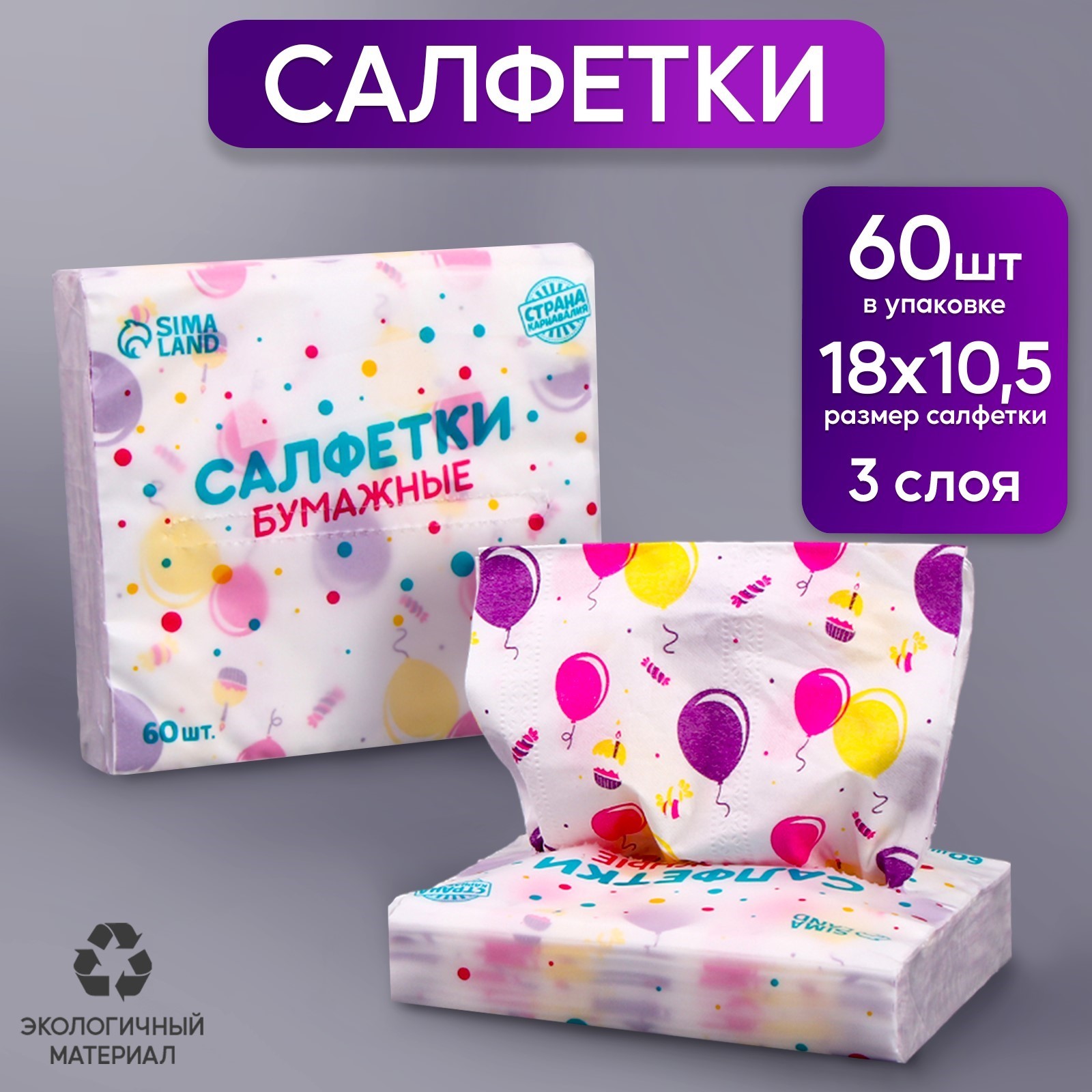 Салфетки бумажные "шарик", 60 шт в пакете, 3 слоя