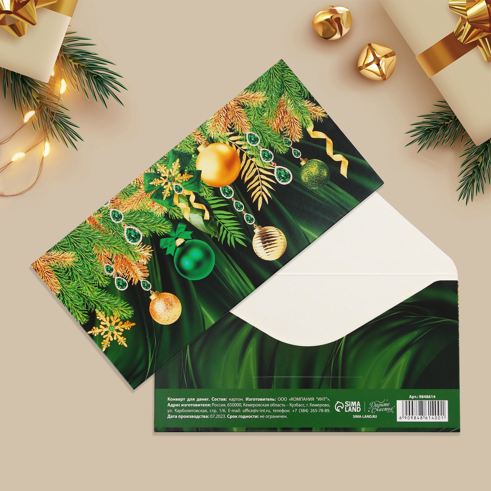 Конверт для денег «с новым годом!», 16.5 х 8 см. Цвет:Зелёный|Для кого:Унисекс|Плотность, г/м :190|Размер, см:8 х 16.5|Отделка:Без отделки|Символ года:Нет|Тематика праздника:Новый год|Материал:Картон|Страна:Россия  развернуть описание ▼