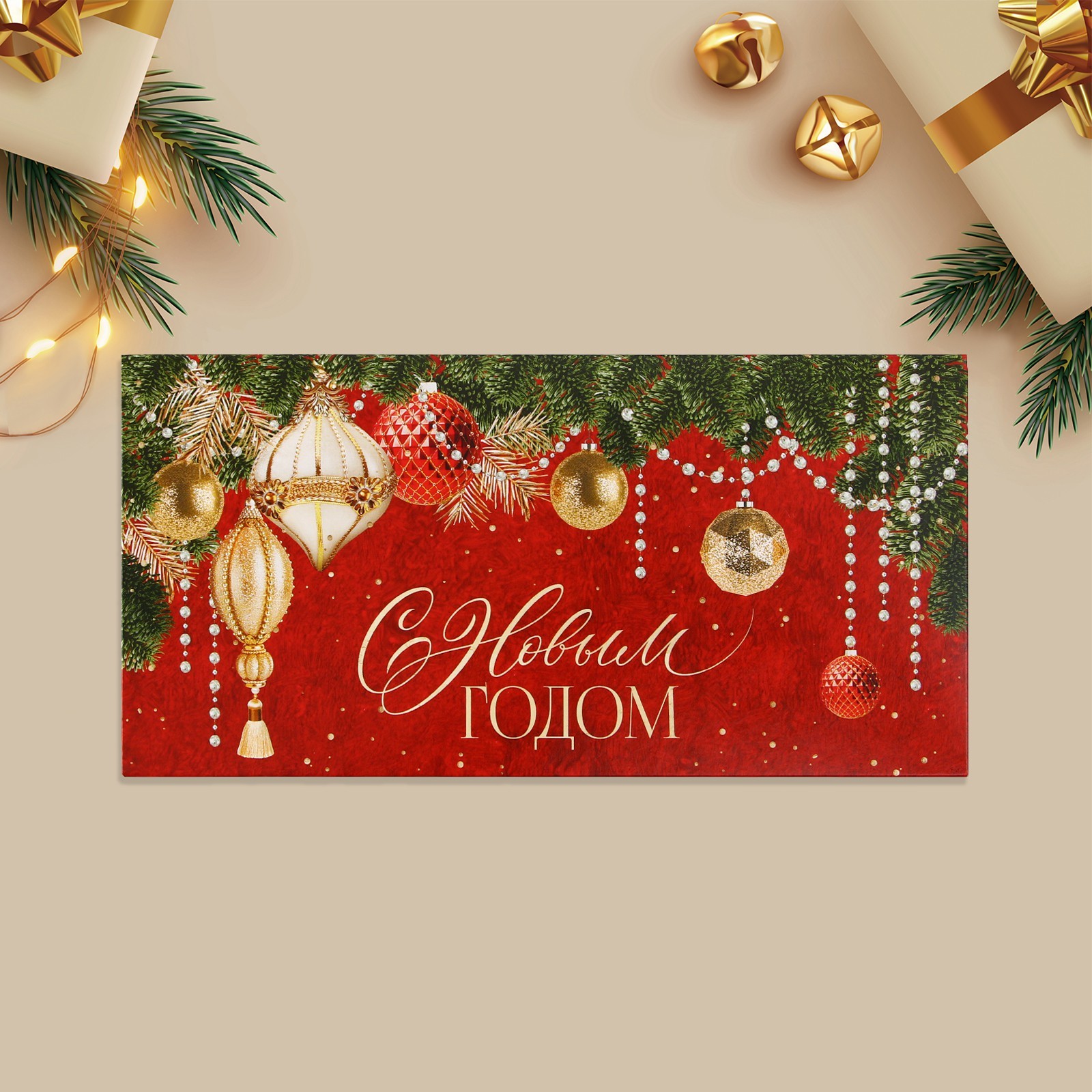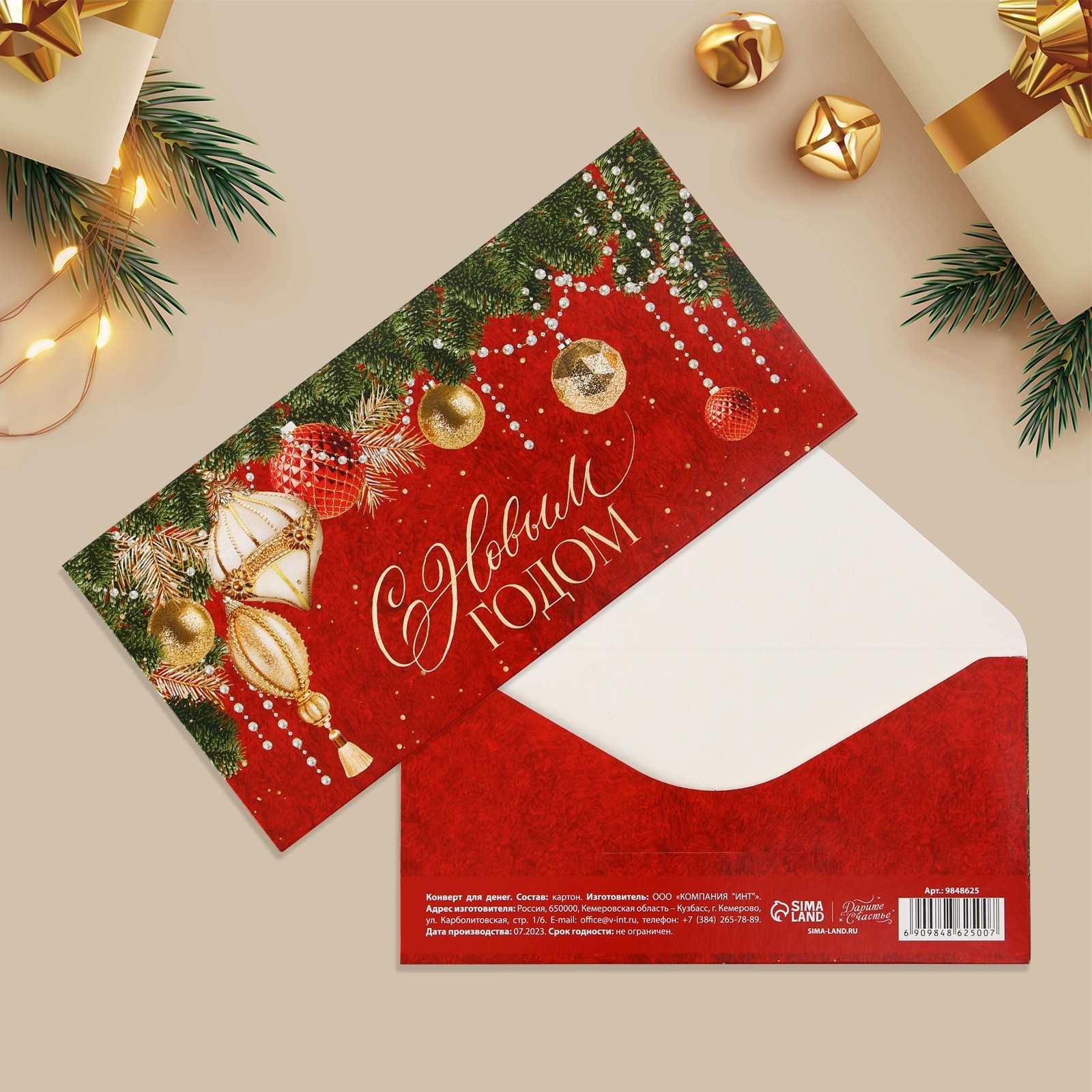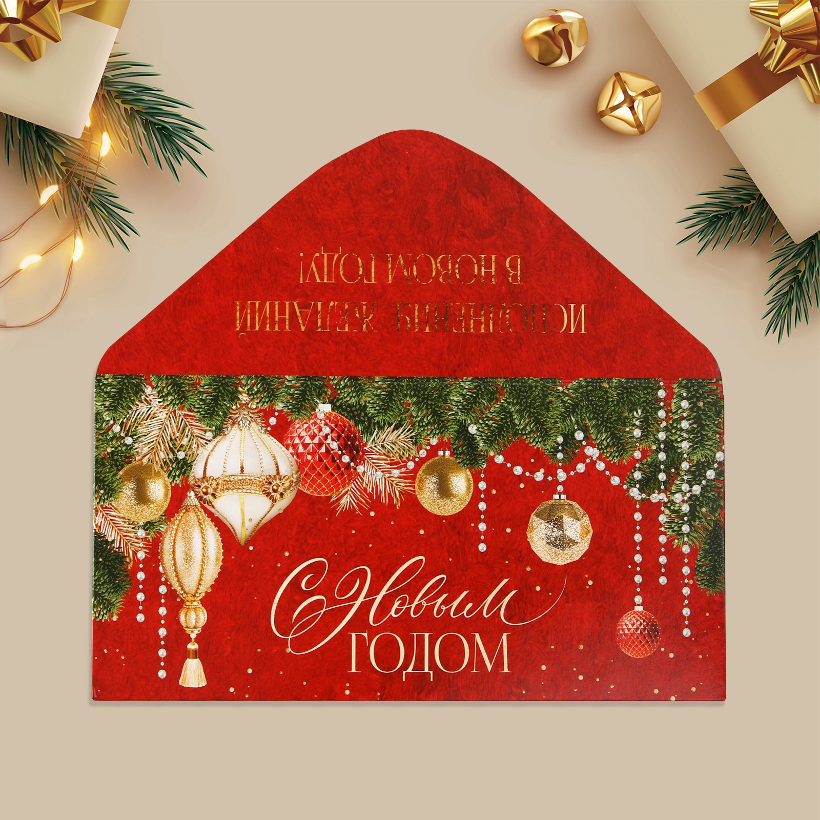 Конверт для денег «с новым годом», 16.5 х 8 см. Цвет:Красный|Для кого:Унисекс|Плотность, г/м :190|Размер, см:8 х 16.5|Отделка:Без отделки|Символ года:Нет|Тематика праздника:Новый год|Материал:Картон|Страна:Россия  развернуть описание ▼