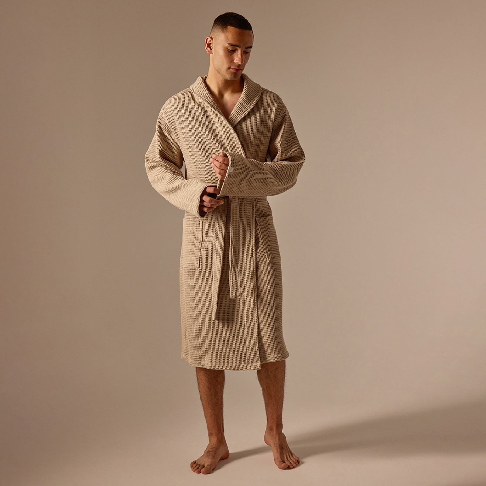 Халат вафельный мужской Sl Home: Basic «саббиа», размер S, хлопок 100%, коричневый