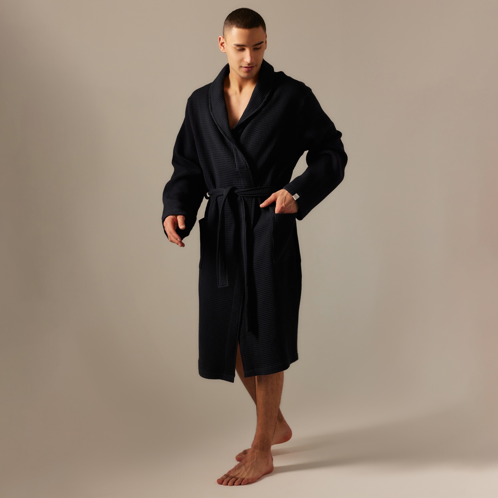 Халат вафельный мужской sl home: basic «дарк маре», размер l, хлопок 100%, чёрный. Цвет:Чёрный|Для кого:Для мужчины|Назначение:Домашняя|Ткань:Вафельное полотно|Плотность, г/м :300|Размер:48|Рост, см:176|Сезон:Всесезонный|Вид застёжки:Пояс|Тематика:Однотонная|Декоративные элементы:Нашивка|Тип карманов:Накладной|Рекомендации по уходу:Стирка при 40 °С|Рекомендации по уходу:Барабанная сушка при низкой температуре|Рекомендации по уходу:Не отбеливать|Рекомендации по уходу:Глажка при 110 °С|Состав ткани:Хлопок|Обхват талии, см:88 - 90|Длина изделия по спинке, см:114|Обхват груди, см:100 - 103|Обхват бёдер, см:106 - 108|Страна:Армения  развернуть описание ▼