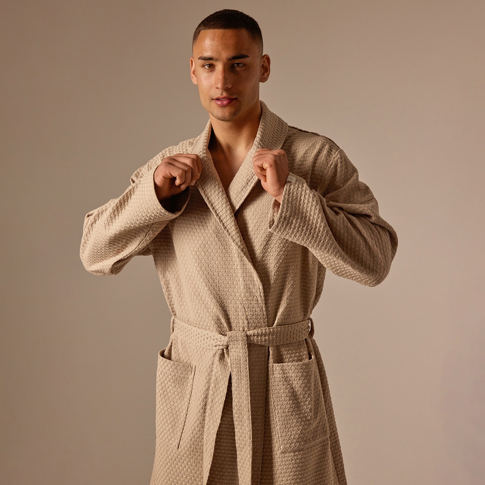 Халат вафельный мужской sl home: waffle «саббиа», размер l, хлопок 100%, коричневый. Цвет:Коричневый|Для кого:Для мужчины|Назначение:Домашняя|Ткань:Вафельное полотно|Плотность, г/м :320|Размер:48|Рост, см:176|Сезон:Всесезонный|Вид застёжки:Пояс|Тематика:Однотонная|Декоративные элементы:Нашивка|Покрой:Свободный|Тип карманов:Накладной|Рекомендации по уходу:Деликатный режим отжима|Рекомендации по уходу:Стирка при 40 °С|Рекомендации по уходу:Глажка при 110 °С|Рекомендации по уходу:Не отбеливать|Состав ткани:Хлопок|Обхват талии, см:88 - 90|Длина изделия по спинке, см:114|Обхват груди, см:100 - 103|Обхват бёдер, см:106 - 108|Страна:Армения  развернуть описание ▼