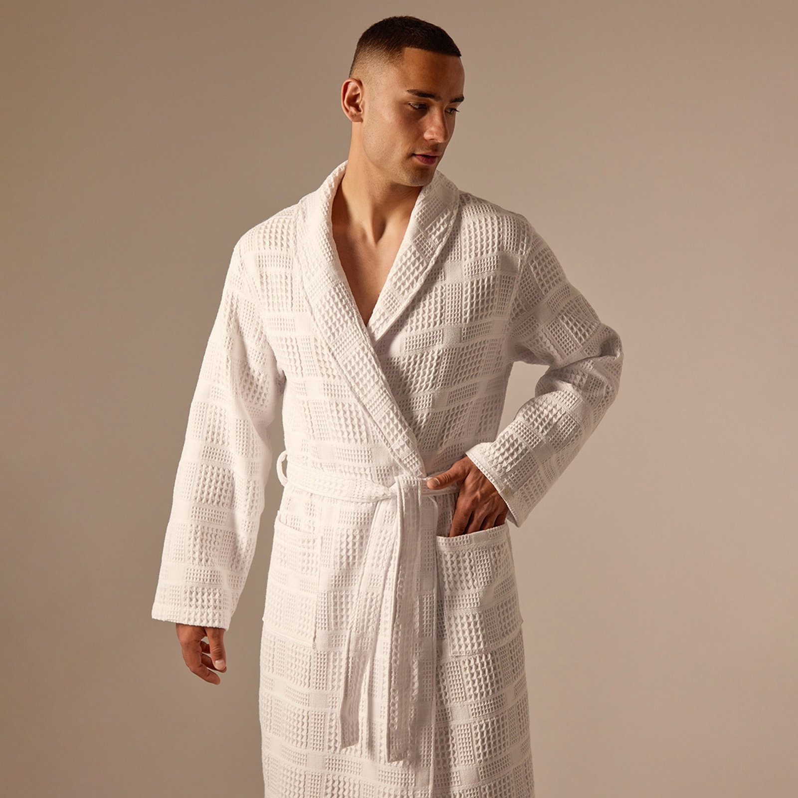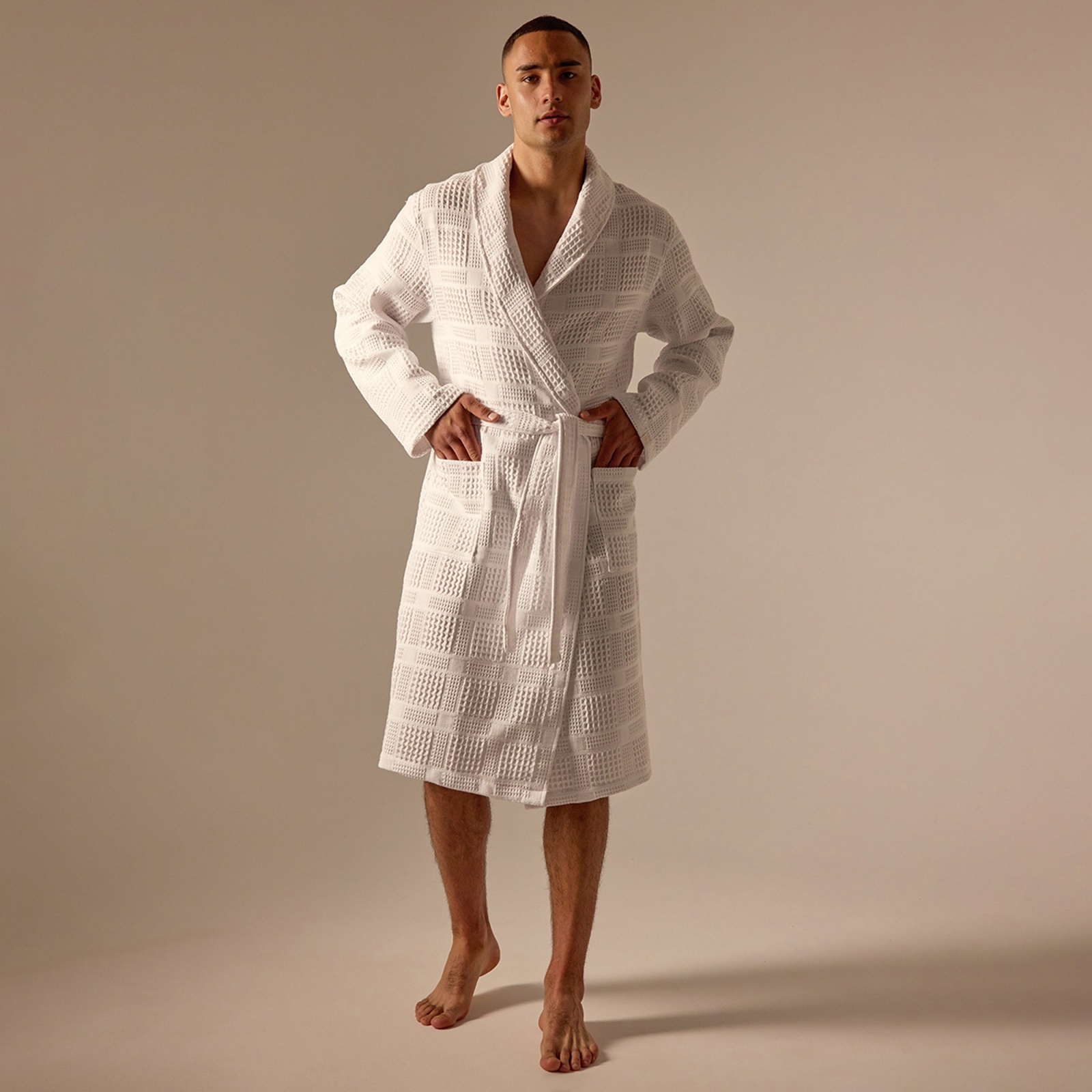 Халат вафельный мужской Sl Home: Chess «блан де блан», размер S, хлопок 100%, белый