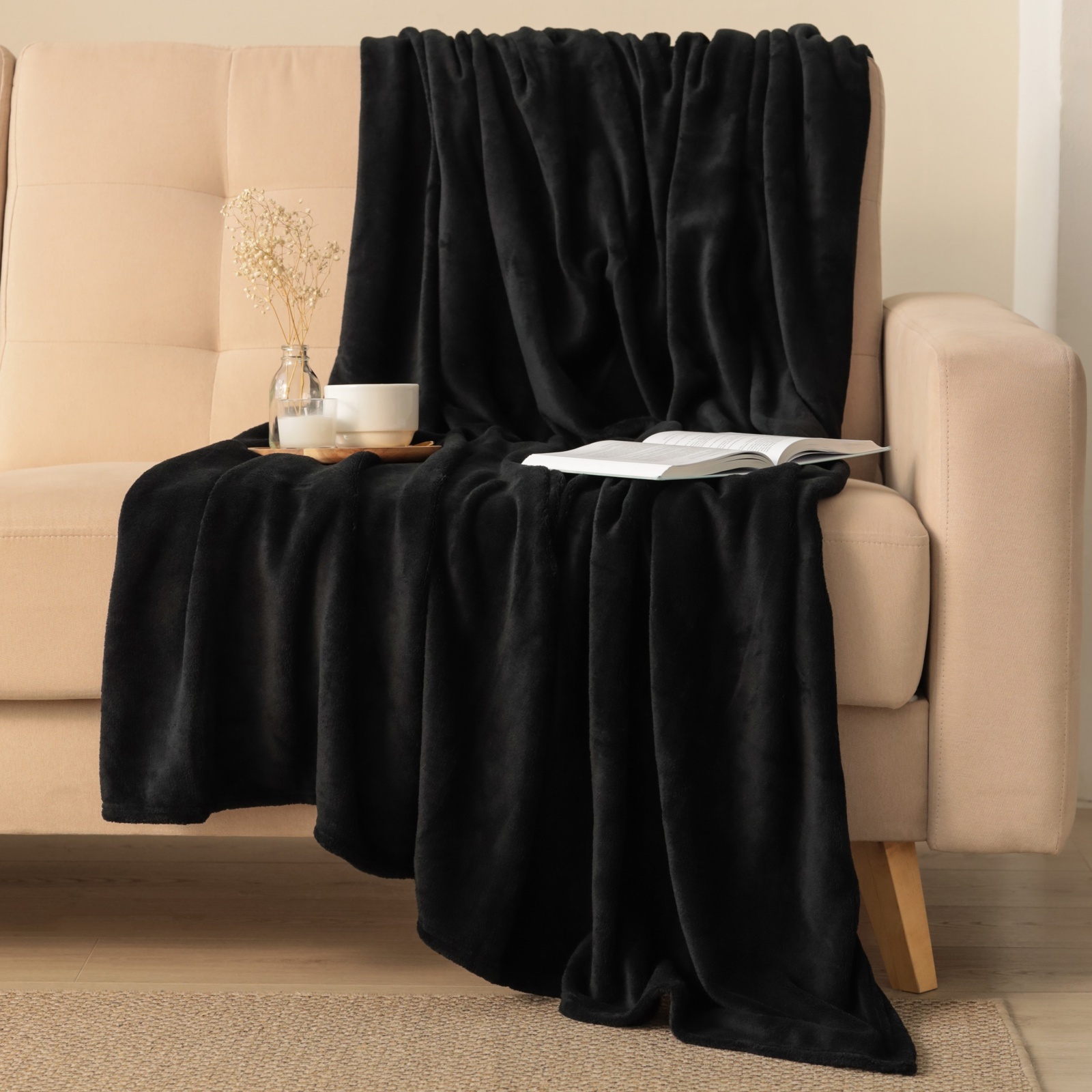 Плед «этель», 180 200 см, корал-флис, чёрный
