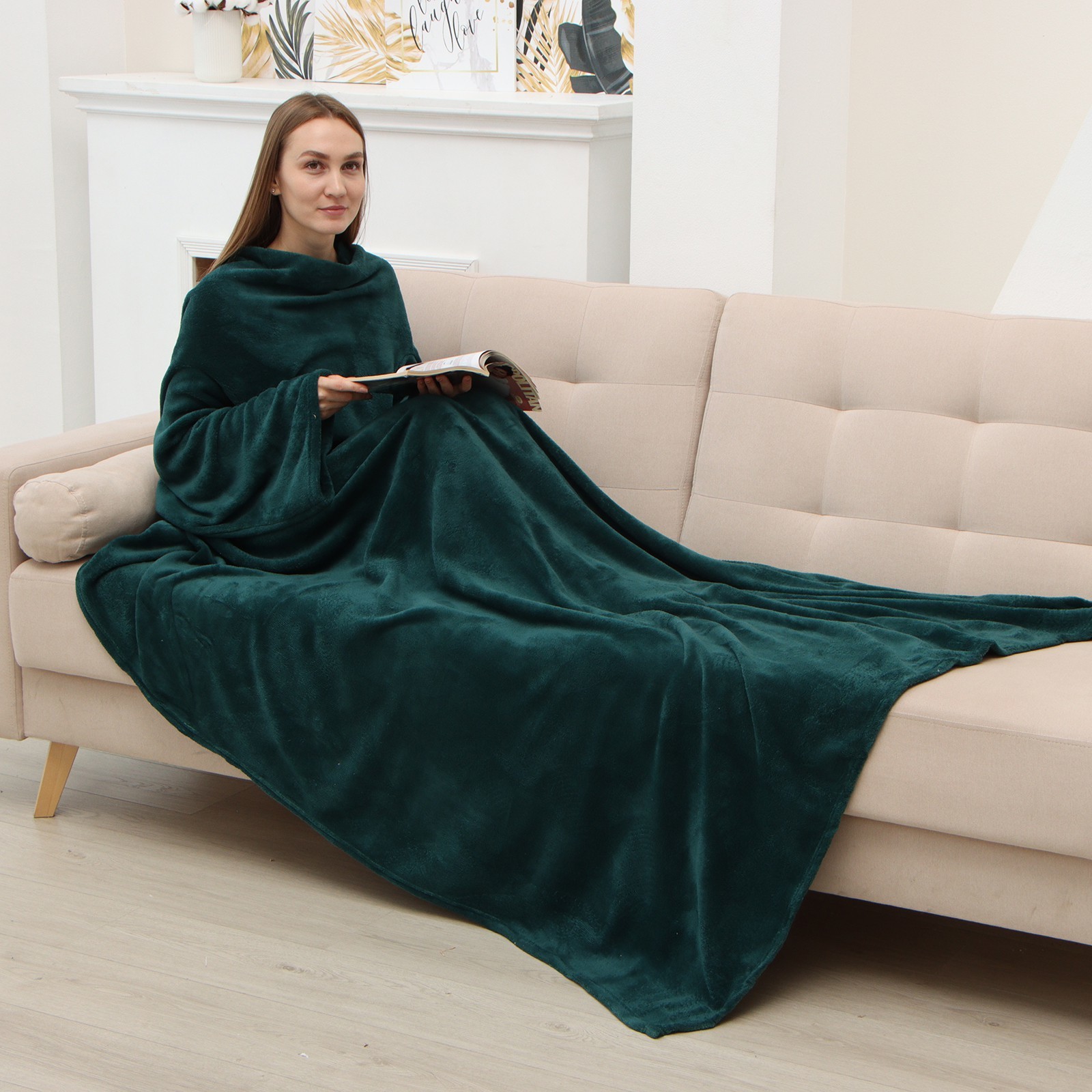 Плед с рукавами «этель», 150 200 см, корал-флис, изумрудный
