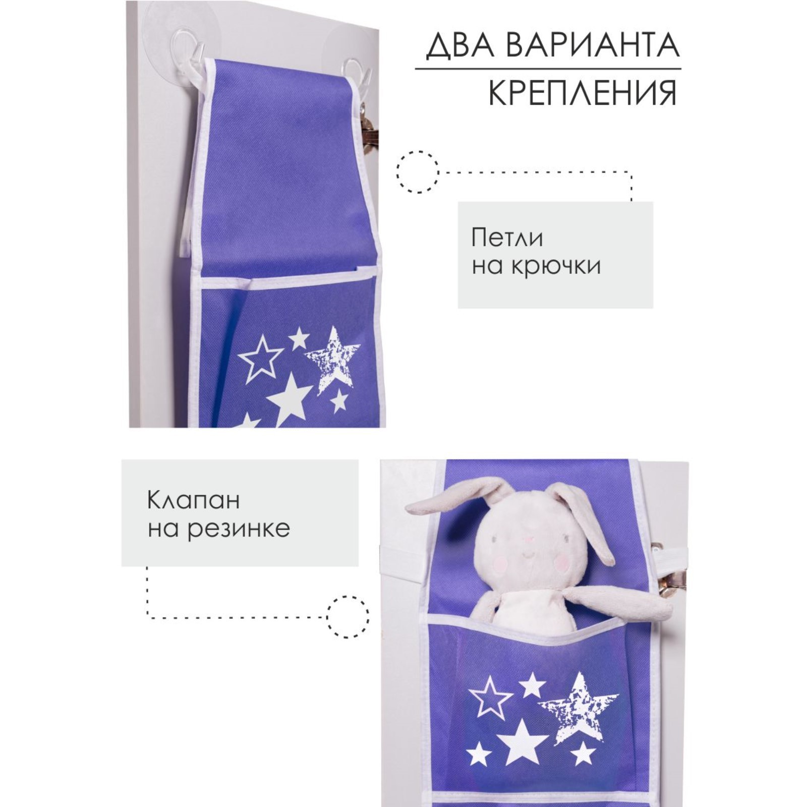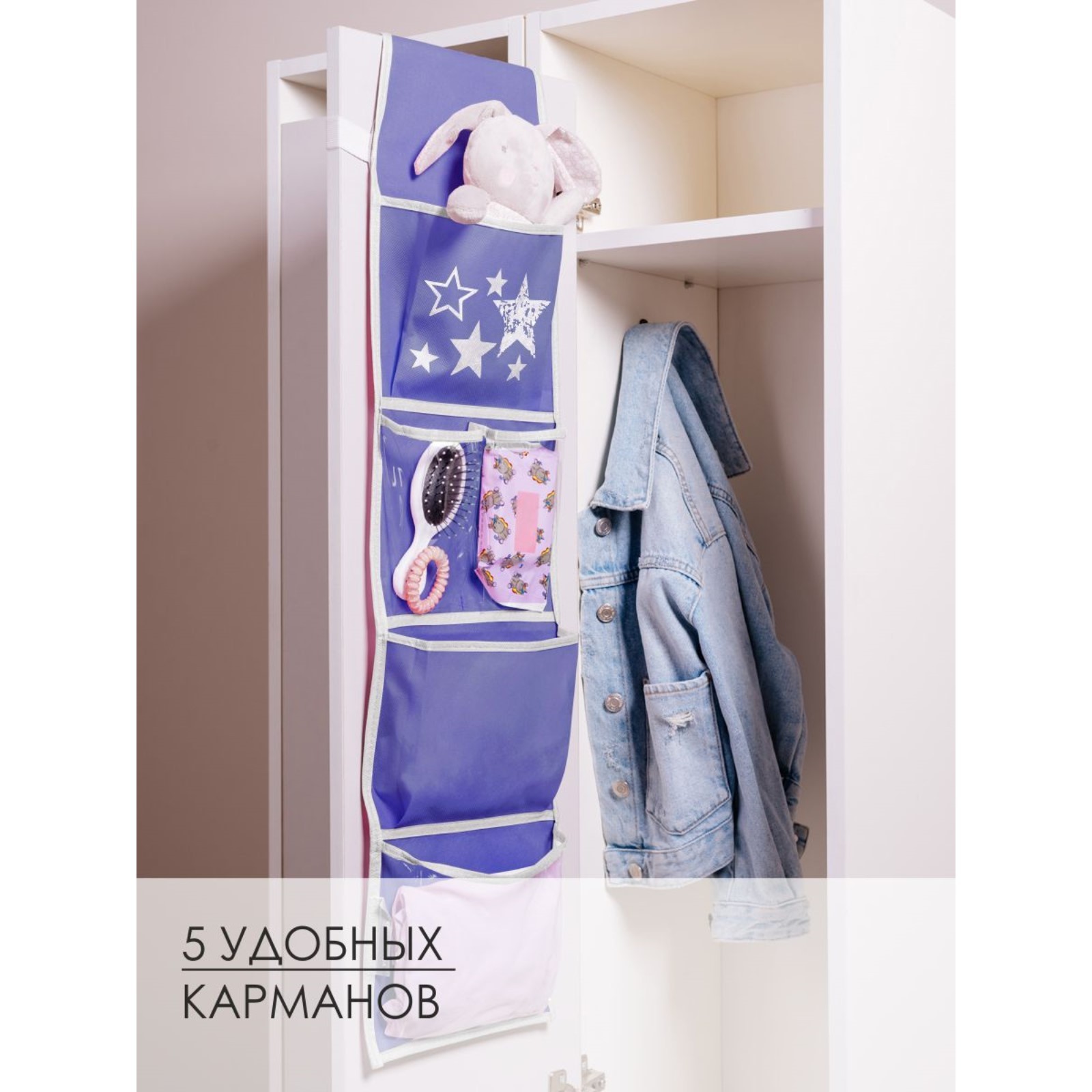 Кармашки в садик «звёзды», для детского шкафчика, 85х20 см, сиреневые