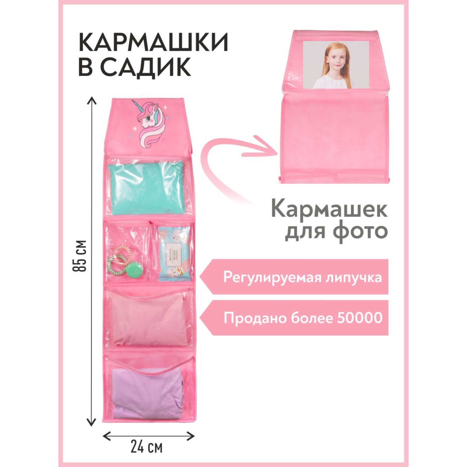 Кармашки в садик «единорожек», для детского шкафчика, 85х24 см