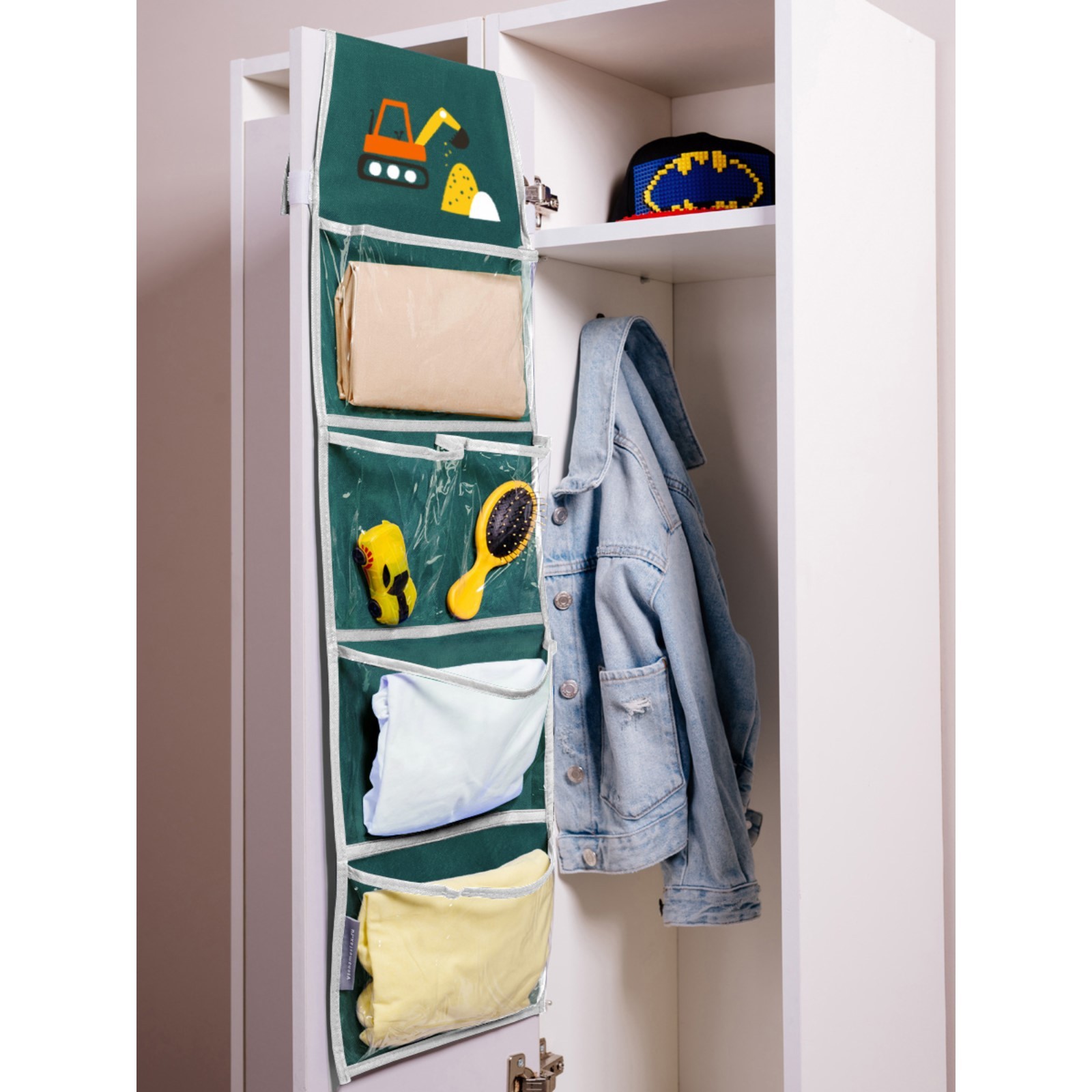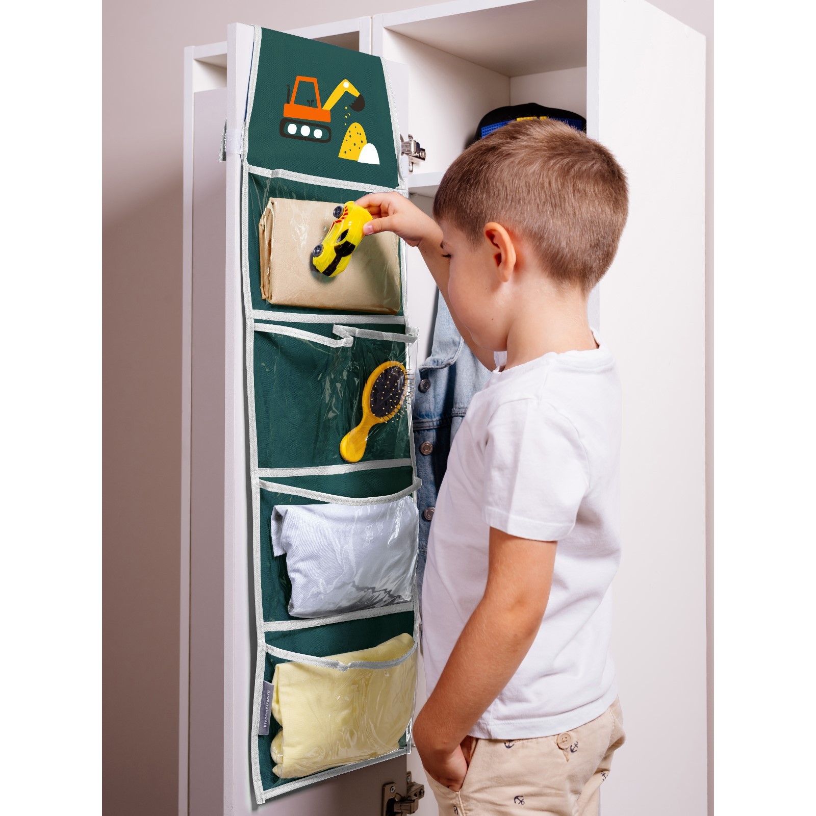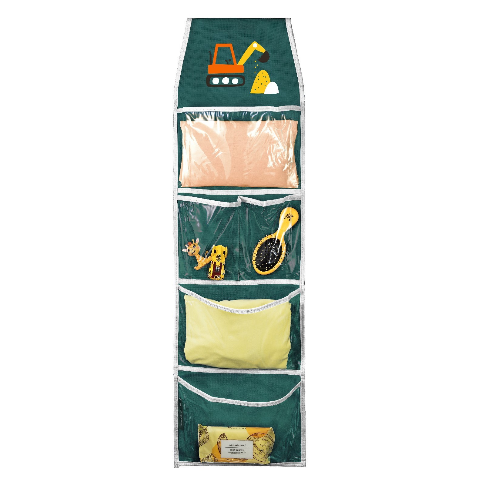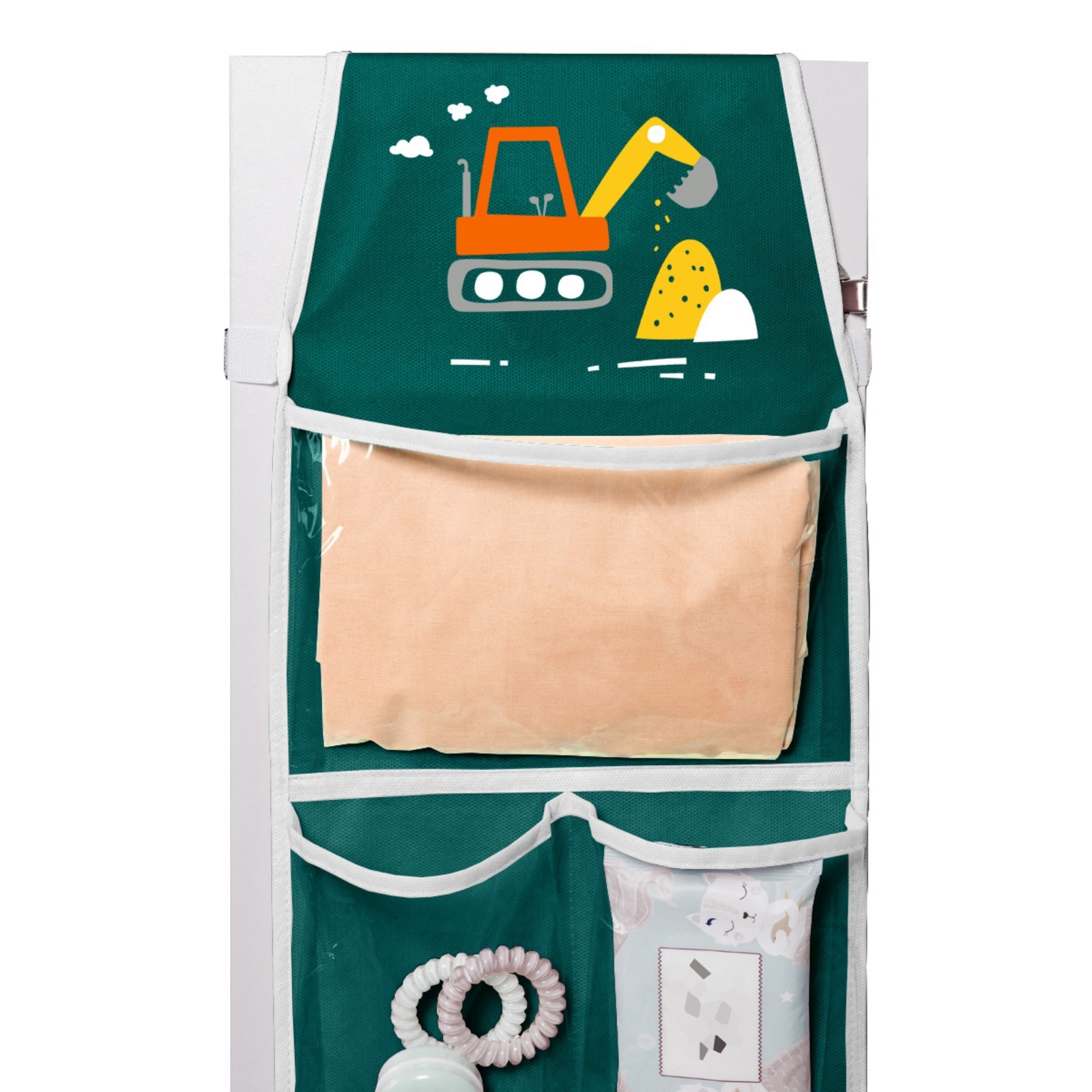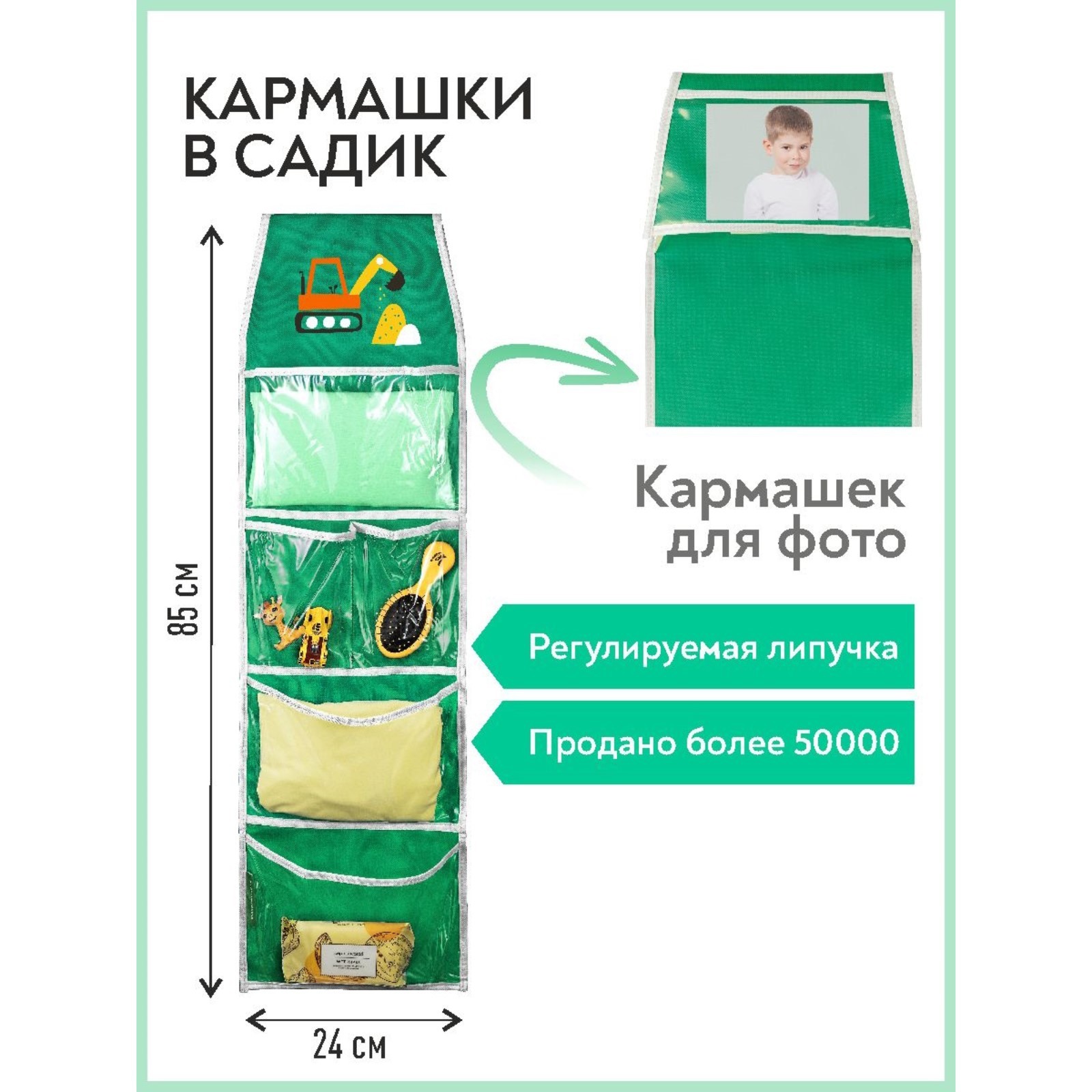 Кармашки в садик «экскаватор», для детского шкафчика, 85х24 см, зелёный