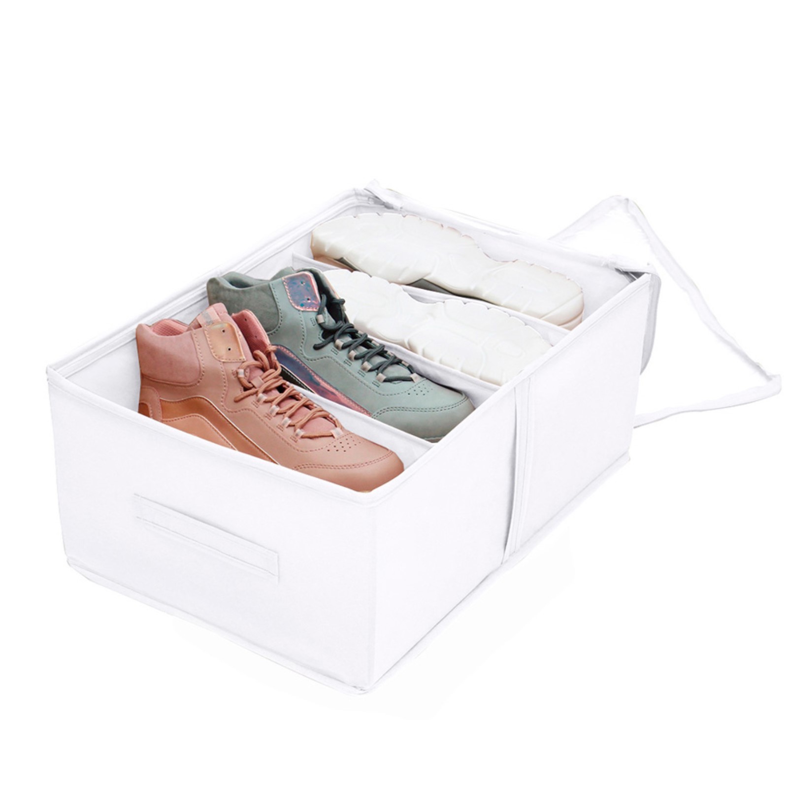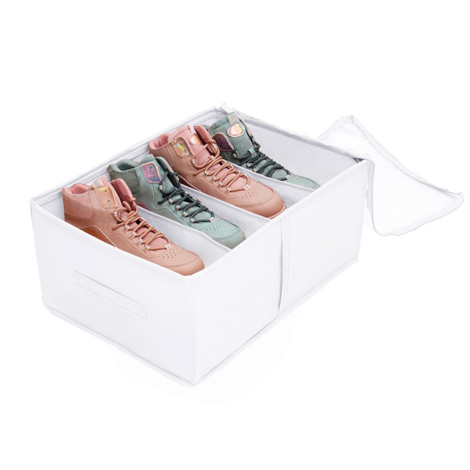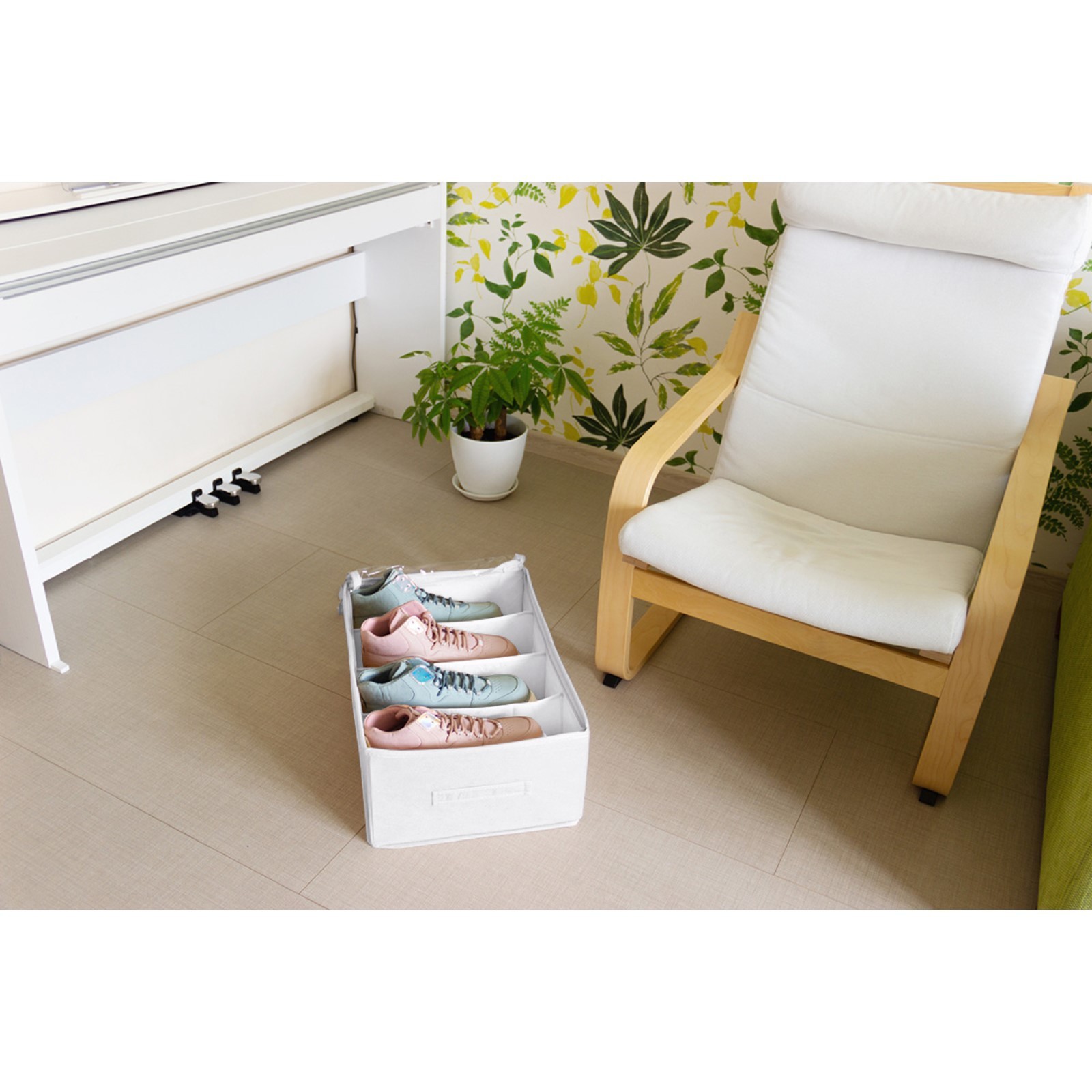 Кофр для обуви «санторини», 34х48х20 см, 4 ячейки. Крышка прозрачная, застёгивается на молнию;На боковой стенке есть ручка для транспортировки;Содержит 4 отсека, укреплённых пластиком - в каждый из них помещается пара обуви размером до 45. Кофр пригодится дома, в путешествиях, поездках. Легко моется мыльной водой. Может также быть использован для перевозки и хранения трикотажных вещей. Цвет: Белый Ширина, см: 34 Высота, см: 20 Глубина, см: 48 В наборе, шт.: 1 Крышка: Да Вид: Чехол для обуви Материал: Спанбонд Материал: ПВХ Колёса/ролики: Нет Вид: Лоток  развернуть описание ▼