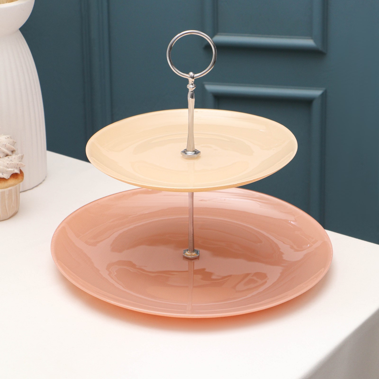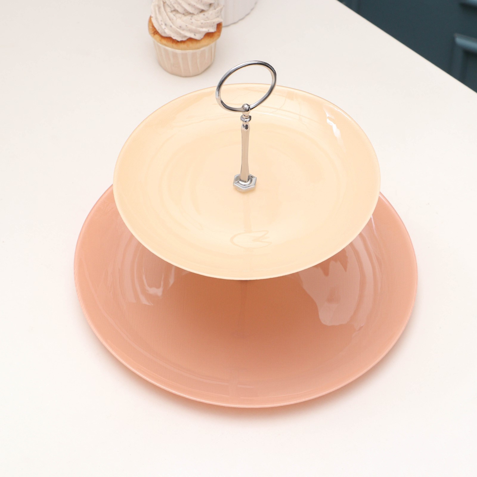 Этажерка «айвори. кораллы», стеклянная, двухъярусная, D=21/28 см