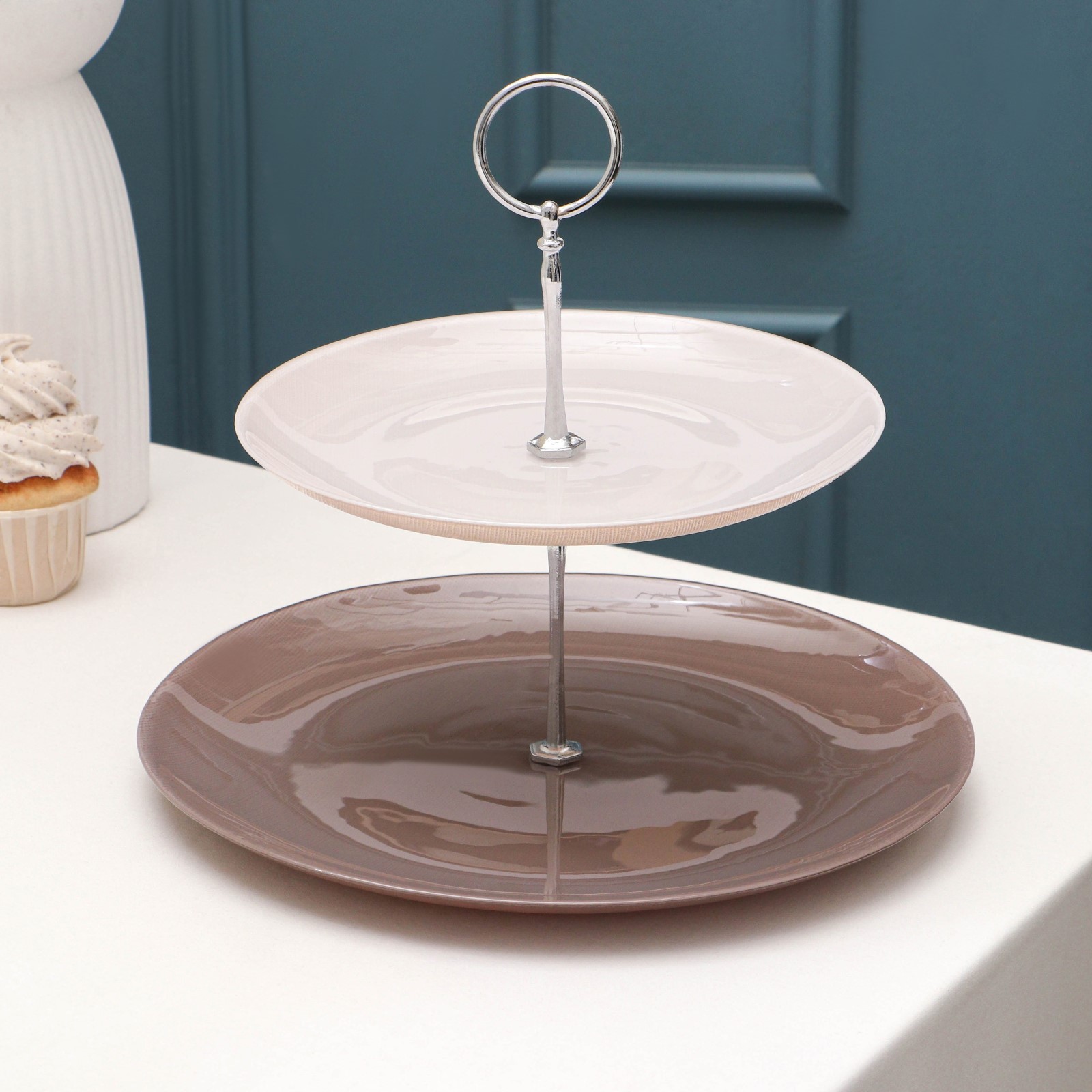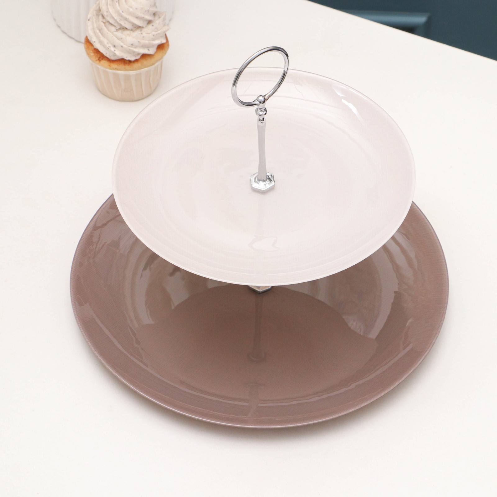 Этажерка «капучино. мокко», стеклянная, двухъярусная, D=21/28 см