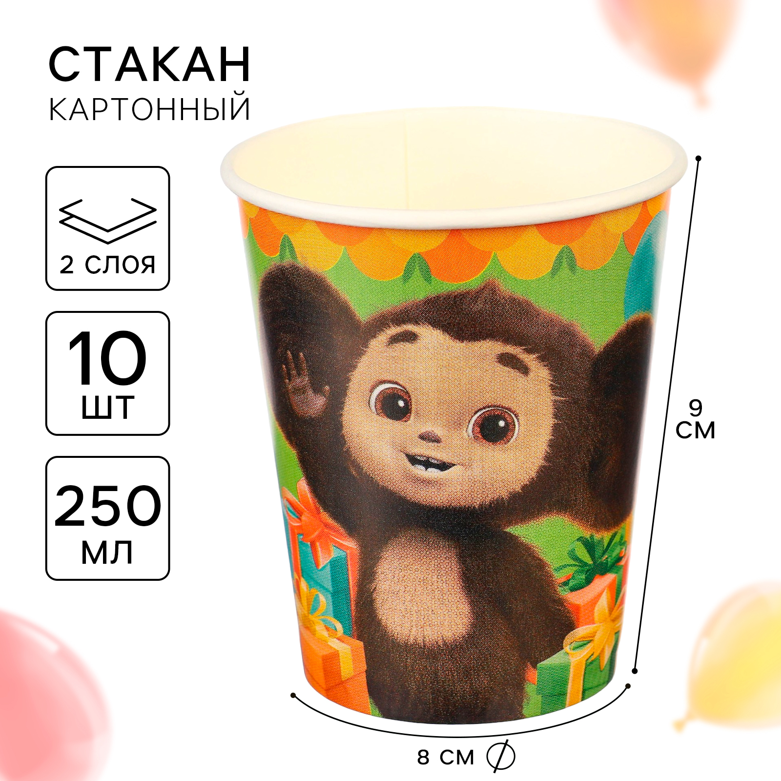 Стакан бумажный, 250 мл, чебурашка