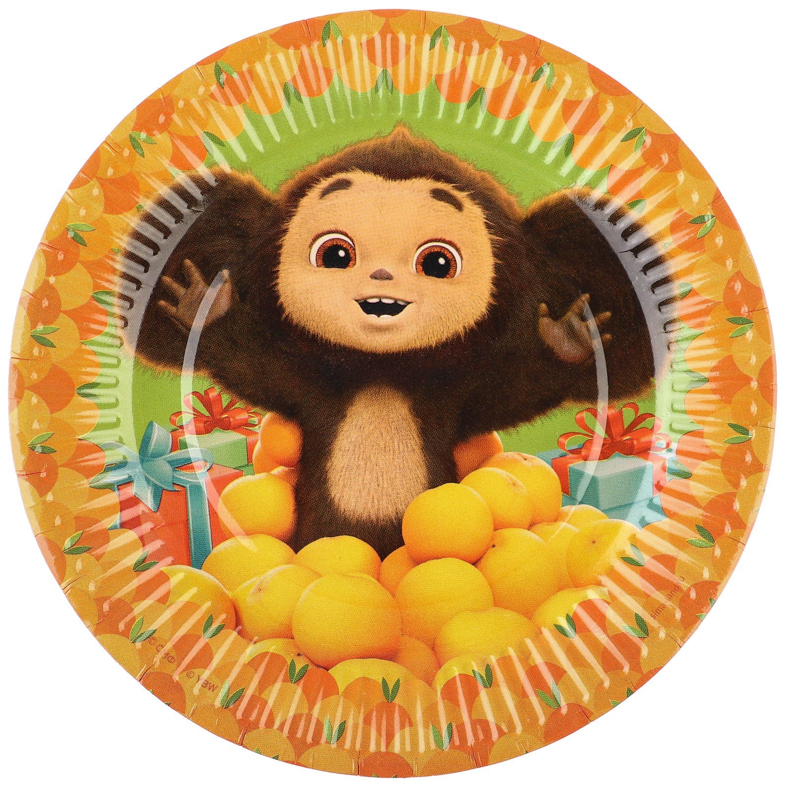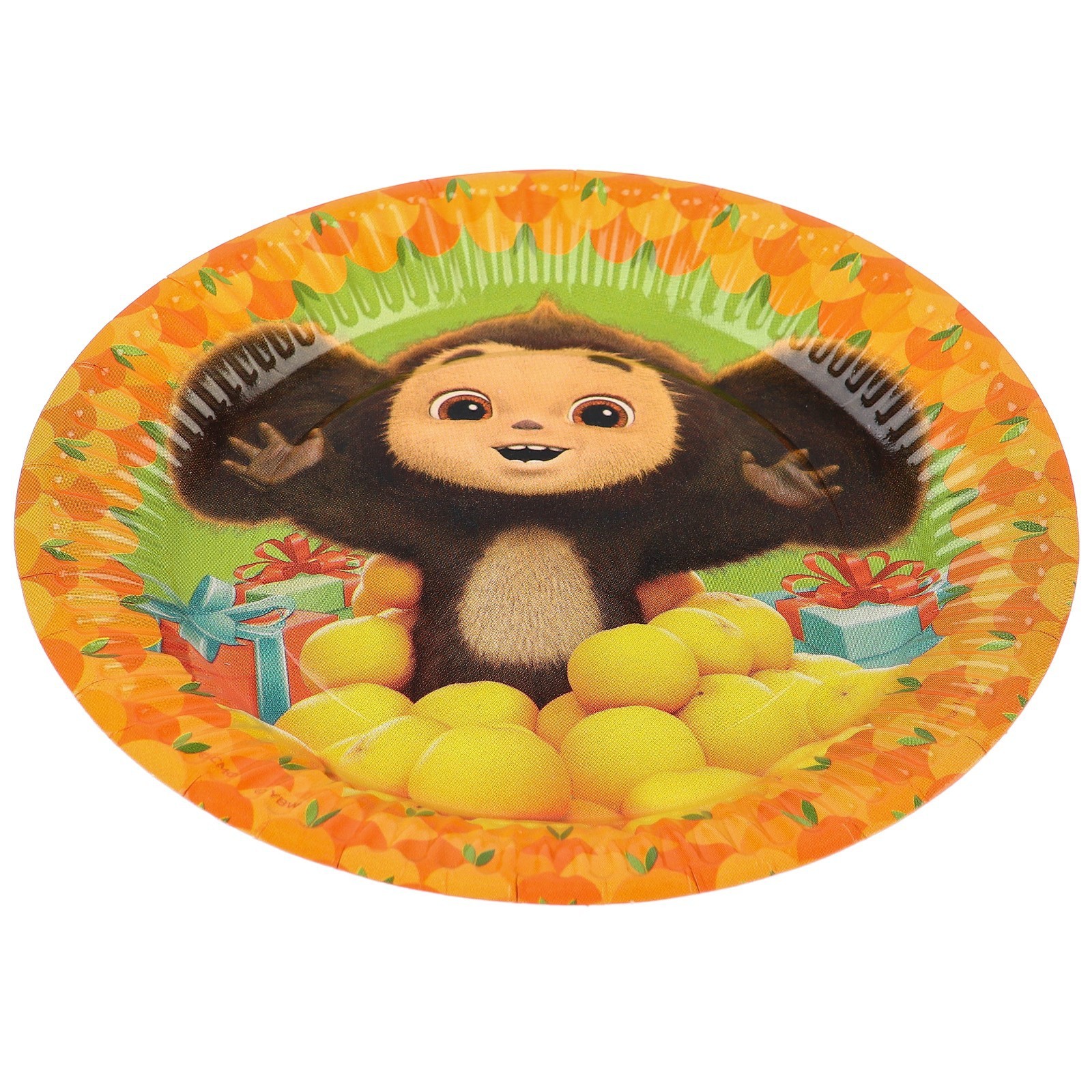 Тарелка бумажная "с днем рождения!", 18 см, чебурашка