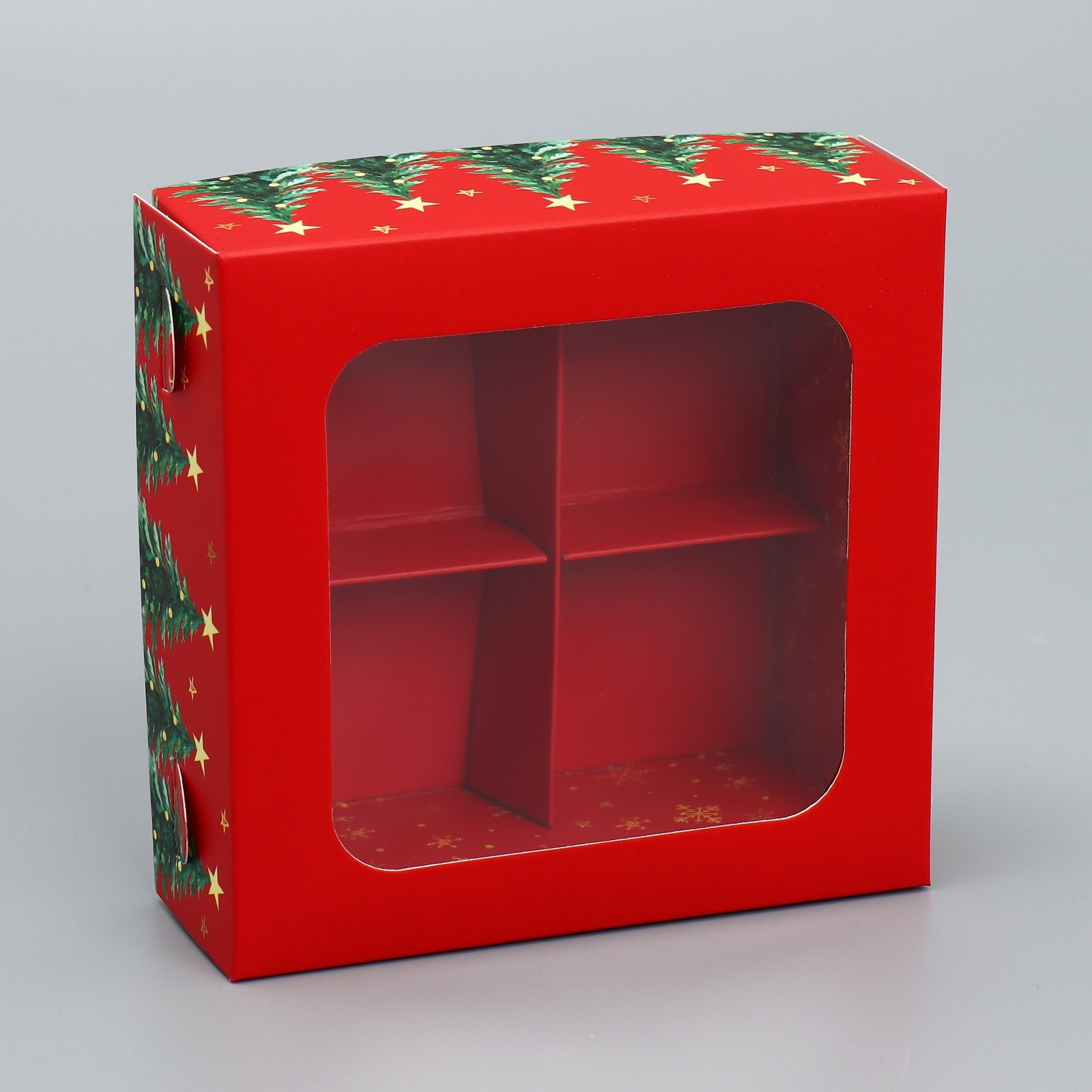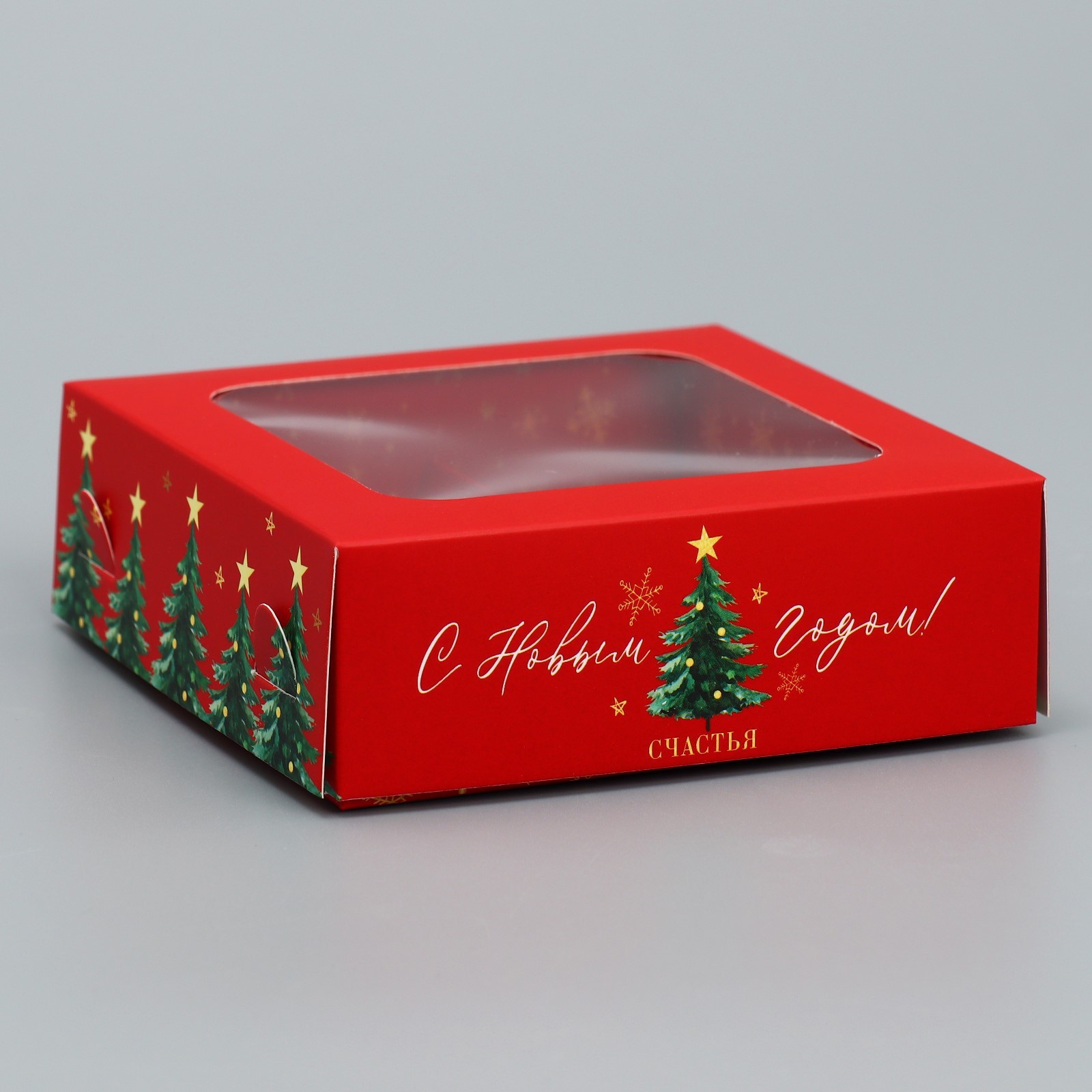 Коробка под 4 конфеты «с новым годом!», ёлочки, 10.5 х 10.5 х 3.5 см