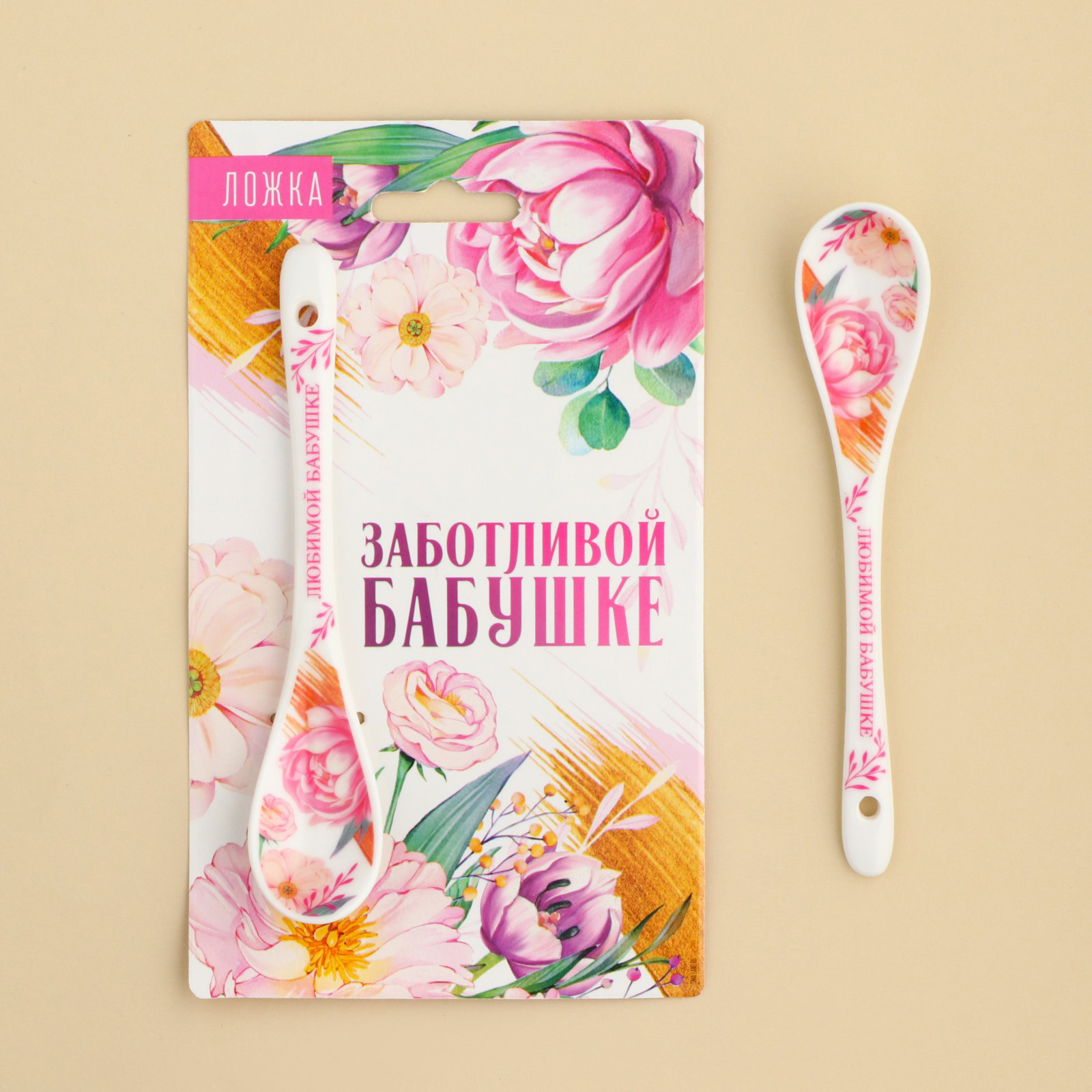 Ложка сувенирная «заботливой бабушке», керамика, 2,5 х 12,5 см.