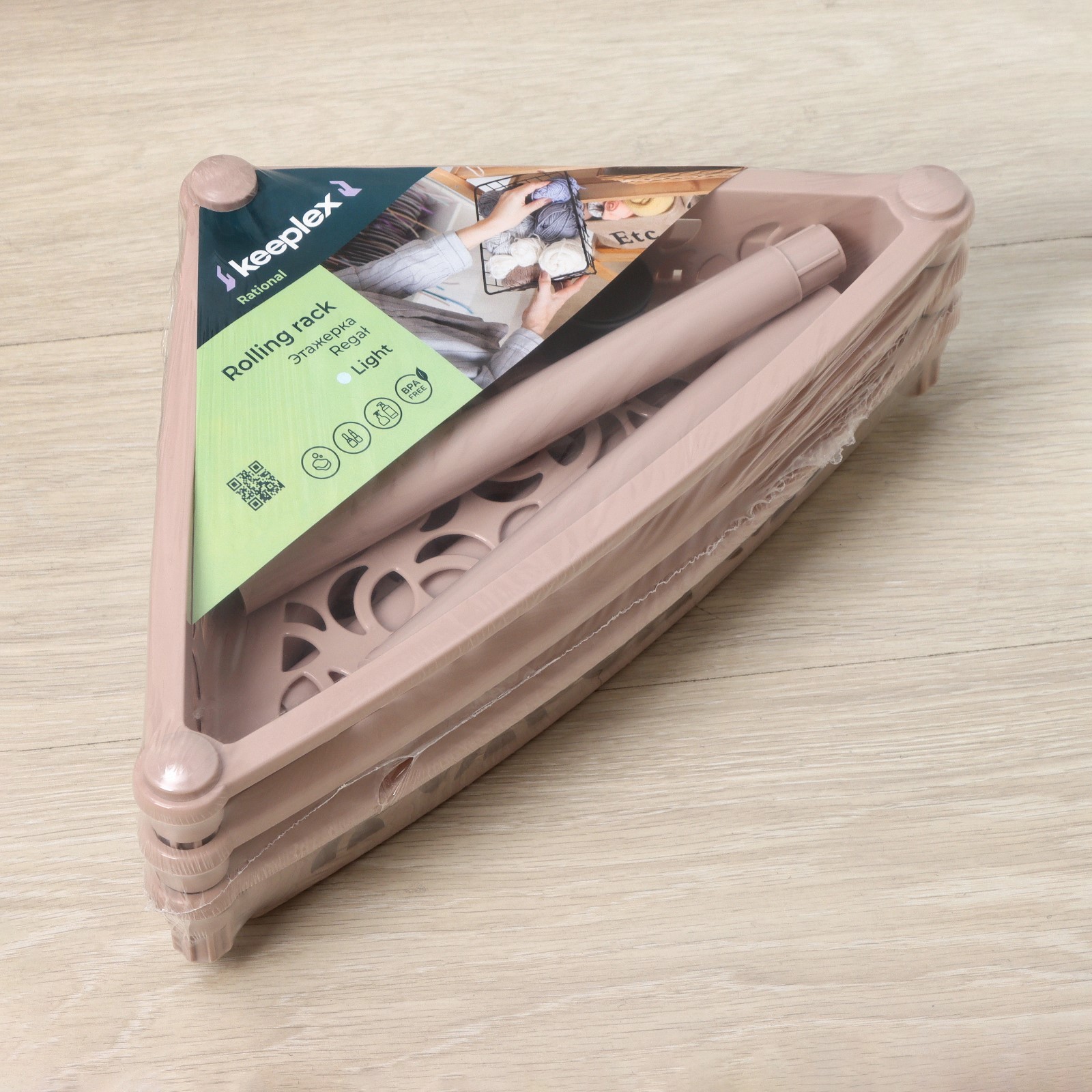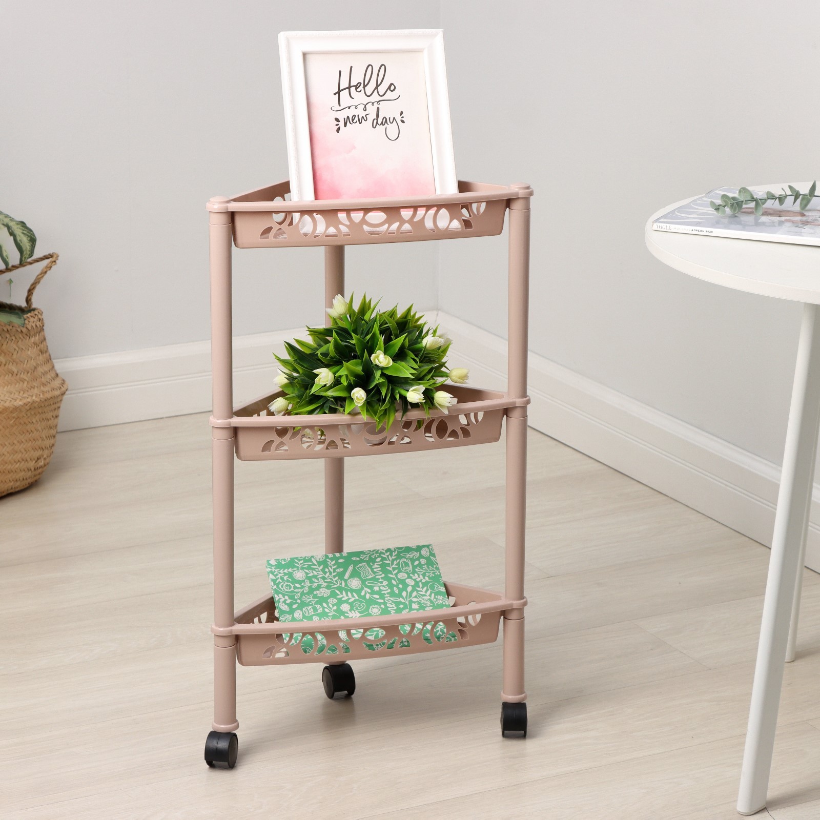 Этажерка напольная угловая 3-х секционная Keeplex Light, на колёсиках, цвет бежевый топаз