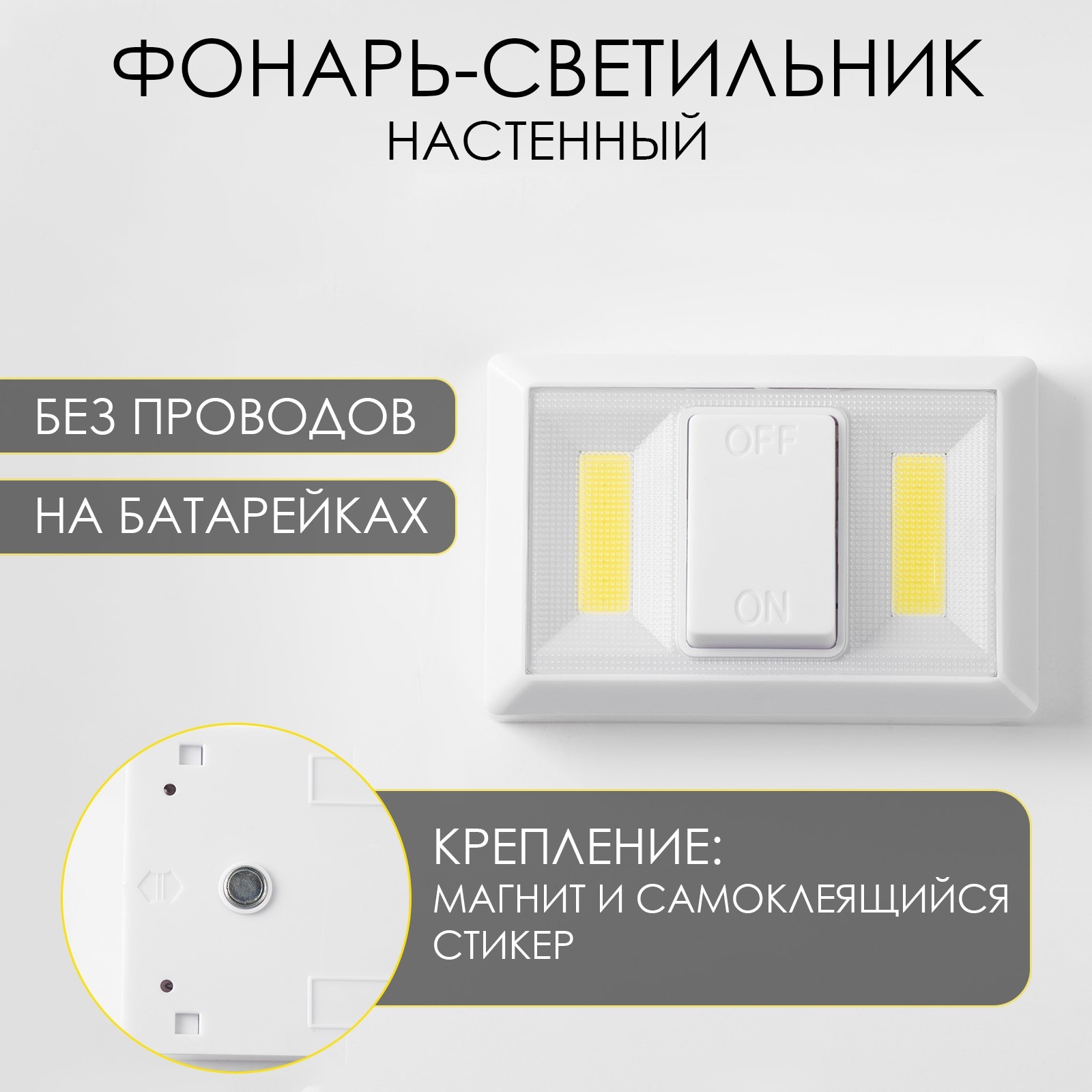 Фонарь-светильник "мастер к", 220 лм, Cob, 4 ааа, магнит, клейкая основа, 11.2 х 7.5 х 3 см