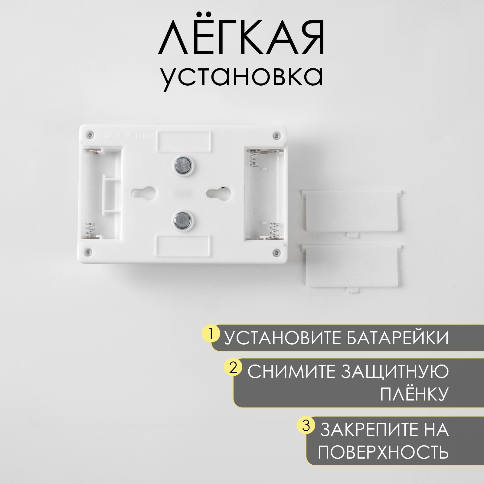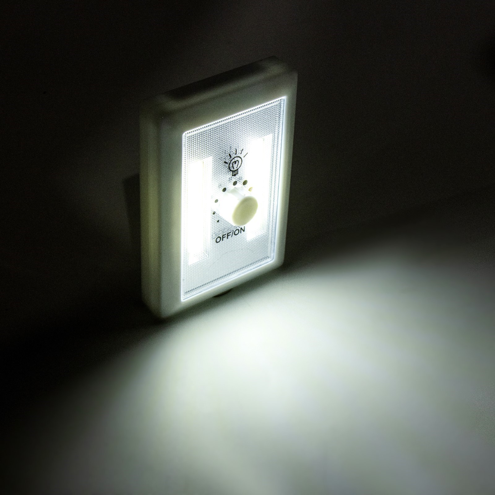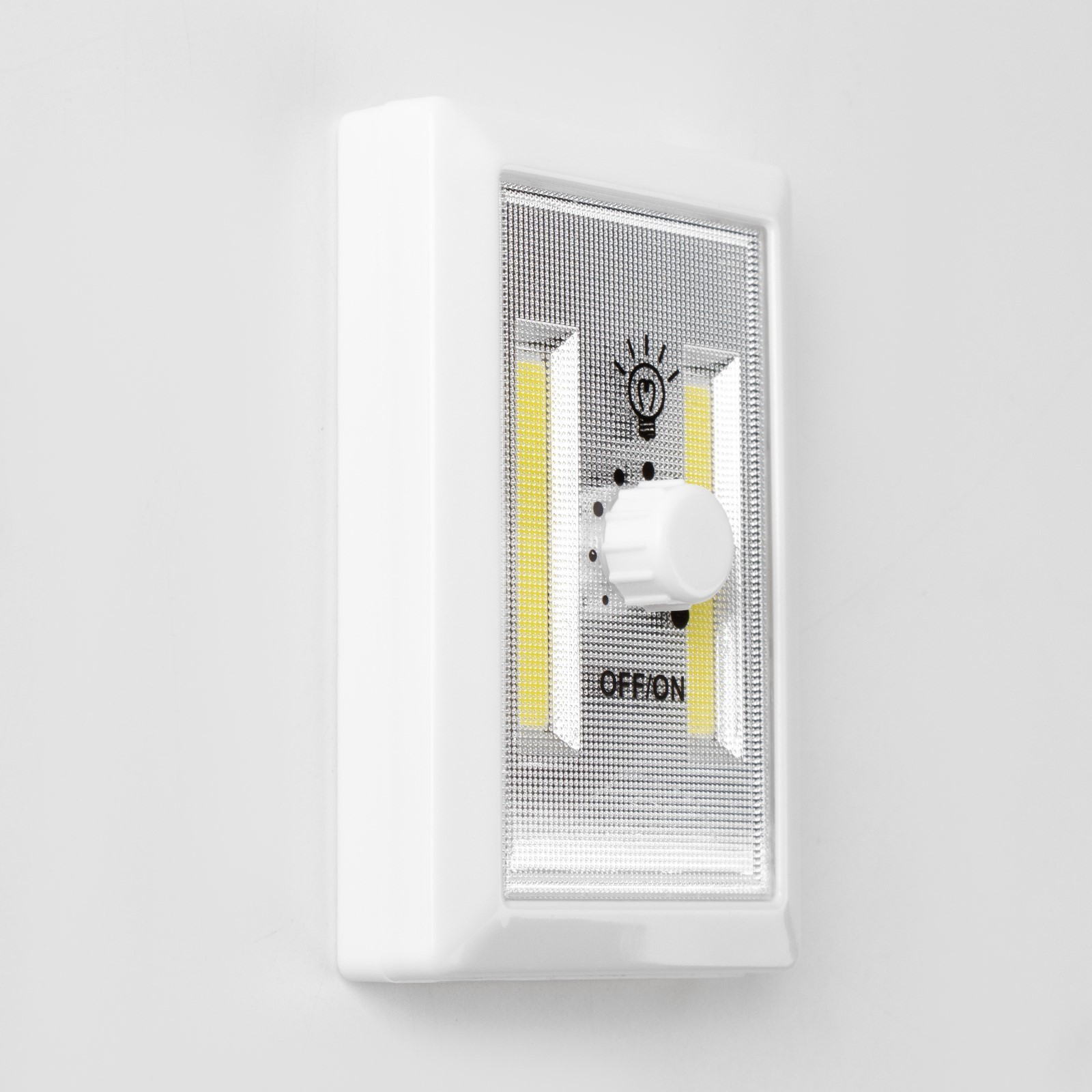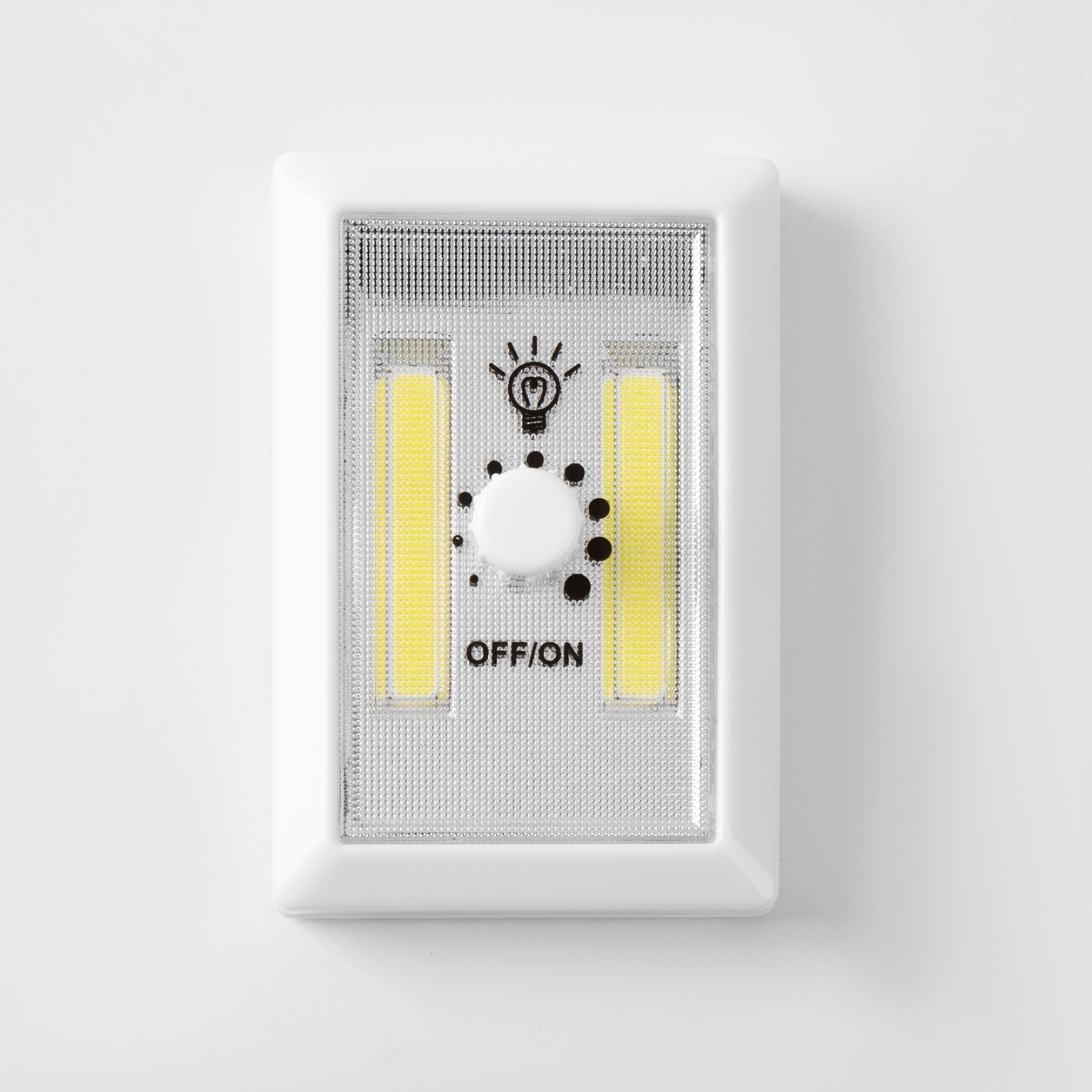 Фонарь-светильник "мастер к", 220 лм, cob, магнит, клейкая основа, 7.5 х 11.5 х 3.3см. Фонарь - светильник предназначен для включения и выключения искусственного освещения в помещении и на улице. Цвет корпуса светильника-выключателя: белый с двумя жёлтыми вставками в центре корпуса. Клавиша светильника -выключателя оснащена индикатором подсветки для удобства определения его месторасположения в темноте. Можно крепить к поверхности с помощью встроенных магнитов на задней панели или ставить на горизонтальную поверхность с помощью встроенной пластмассовой подставки. Имеется встроенный регулятор яркости на передней панели светильника и встроенный отсек для 2-х батареек типа ААА. Фонарь-светильник выручит вас там, куда сложно или не хочется тянуть провода. Никаких проблем с монтажом - устанавливайте их на любую поверхность с помощью самоклеющихся стикеров, которые входят в комплект или магнитов. Фонарь подходит для подсветки гардероба, шкафов, интерьерных элементов, ванной комнаты, чтения книг в кровати и кладовой. Особенности: Тип фонаря: светильникТип светодиода: СОВТип питания: от батарейки (2 ААА)Яркость: 220 ЛмМатериал корпуса: пластикРазмеры: 7. 5 х 11. 5 х 3. 3 см Тип питания: От батареек Стиль: Светодиодные Количество батареек: 3 Типоразмер батареек: AAA (LR03)  развернуть описание ▼