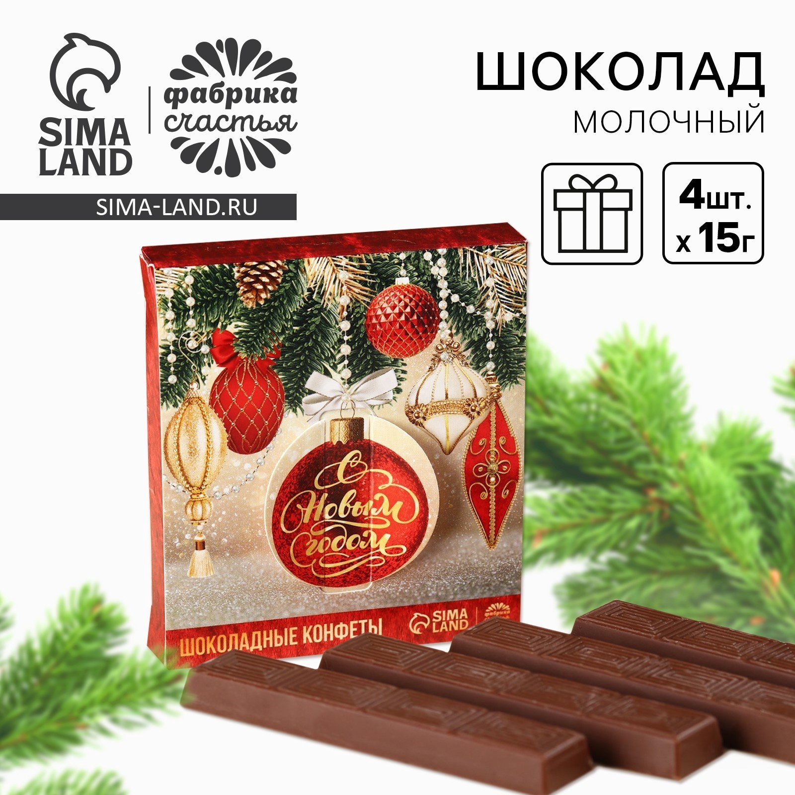 Шоколад молочный «с новым годом» в коробке, 60 г ( 4 шт. х 15 г).. ПРИ ОФОРМЛЕНИИ ЗАКАЗА, ПРОСИМ ЗАПРАШИВАТЬ АКТУАЛЬНЫЕ СРОКИ ГОДНОСТИ У МЕНЕДЖЕРА Состав: сахар, растительные масла (пальмовое, пальмоядровое, полностью гидрогенизированное пальмоядровое), молоко сухое обезжиренное, какао - порошок алкализованный, сыворотка молочная сухая, какао тёртое, эмульгаторы (лецитин соевый, Е492), молочный белок, ароматизаторы. Срок годности: 10 месяцев Масса нетто: 60 г ( 4 шт. х 15 г). Белки, г:5|Жиры, г:37|Углеводы, г:54|Вес нетто, г:60|Энергетическая ценность, ккал:570|Символ года:Нет|Тематика праздника:Новый год|Форма:Стики|Вид шоколада:Молочный|Добавки:С кремом|Страна:Россия  развернуть описание ▼
