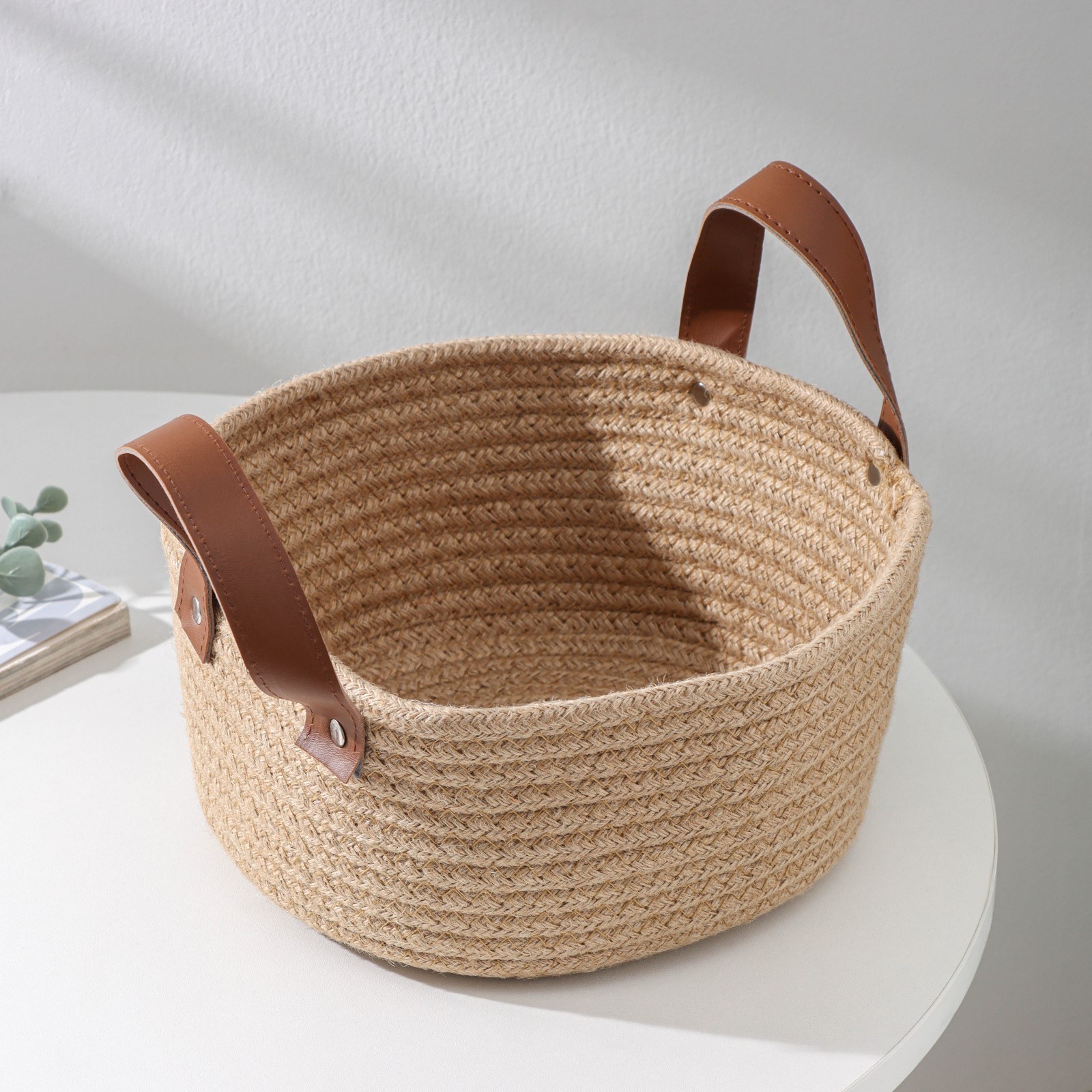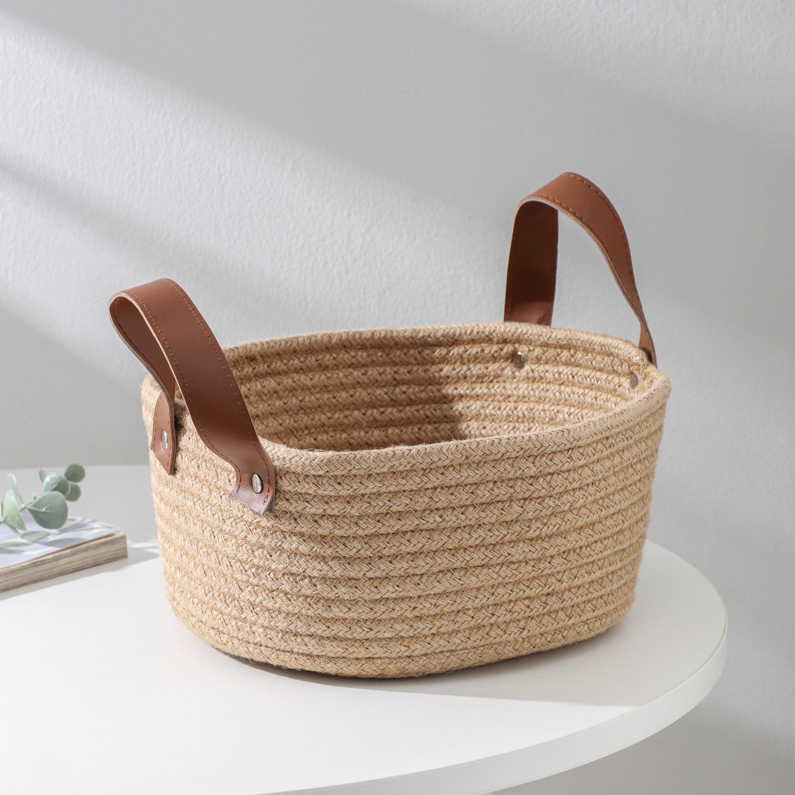 Корзина для хранения плетёная ручной работы «айко», 21,5x21,5x16,5 см, с ручками, цвет бежевый. Представляем вам универсальную корзину для хранения вещей «Айко», которая станет незаменимым аксессуаром в вашем доме! Она идеально подходит для хранения и впишется в интерьер любой комнаты. Преимущества: Уникальность наших корзинок в том, что все изделия – ручной работы. Корзинка изготовлена из экологичного материала. Дизайн корзины подойдет для интерьеров в стиле: скандинавский, рустик, лофт, этно, фьюжен, фьюжн, кантри, деревенский, бохо, афро, шале. Такие корзины хорошо комбинировать натуральными материалами – текстиль, керамика, камень, кирпич. Получится уютный и вместе с тем динамичный интерьер. Применение: Милая интерьерная корзинка прекрасно подходит для размещения в прихожей или гардеробной. Она станет удобным и стильным органайзером для одежды, шапок и других головных уборов, белья. На кухне корзину можно использовать для хранения полотенец, хозяйственных принадлежностей, бытовой химии или даже продуктов. В корзинке можно компактно и эстетично разместить пряжу и другие принадлежности для рукоделия, вязания, шитья, швейные инструменты и нитки, а также разнообразные ткани и материалы для творчества. В детской комнате подойдет для хранения игрушек. Корзинка станет замечательным офисным аксессуаром для комфортного размещения книг, журналов и канцелярских принадлежностей. Уход и эксплуатация: Не рекомендуем стирать корзину в стиральной машине. Для устранения местных загрязнений используйте теплую воду, мыло (средство для посуды) и мягкую губку или щетку, но не рекомендуется сильно мочить корзинку. Выбирайте предметы интерьера, которые вдохновляют и делают вас счастливыми. Закажите корзину для хранения на нашем сайте и начните преображение своего дома уже сегодня! Цвет: Бежевый Форма: Круглая Ширина, см: 21.5 Высота, см: 16.5 Глубина, см: 21.5 parts count: 0 tnved: 4602199000 Крышка: Нет Материал: Искусственная кожа Материал: Лён Основной материал: Текстиль Форма: Круг, шар, цилиндр  развернуть описание ▼