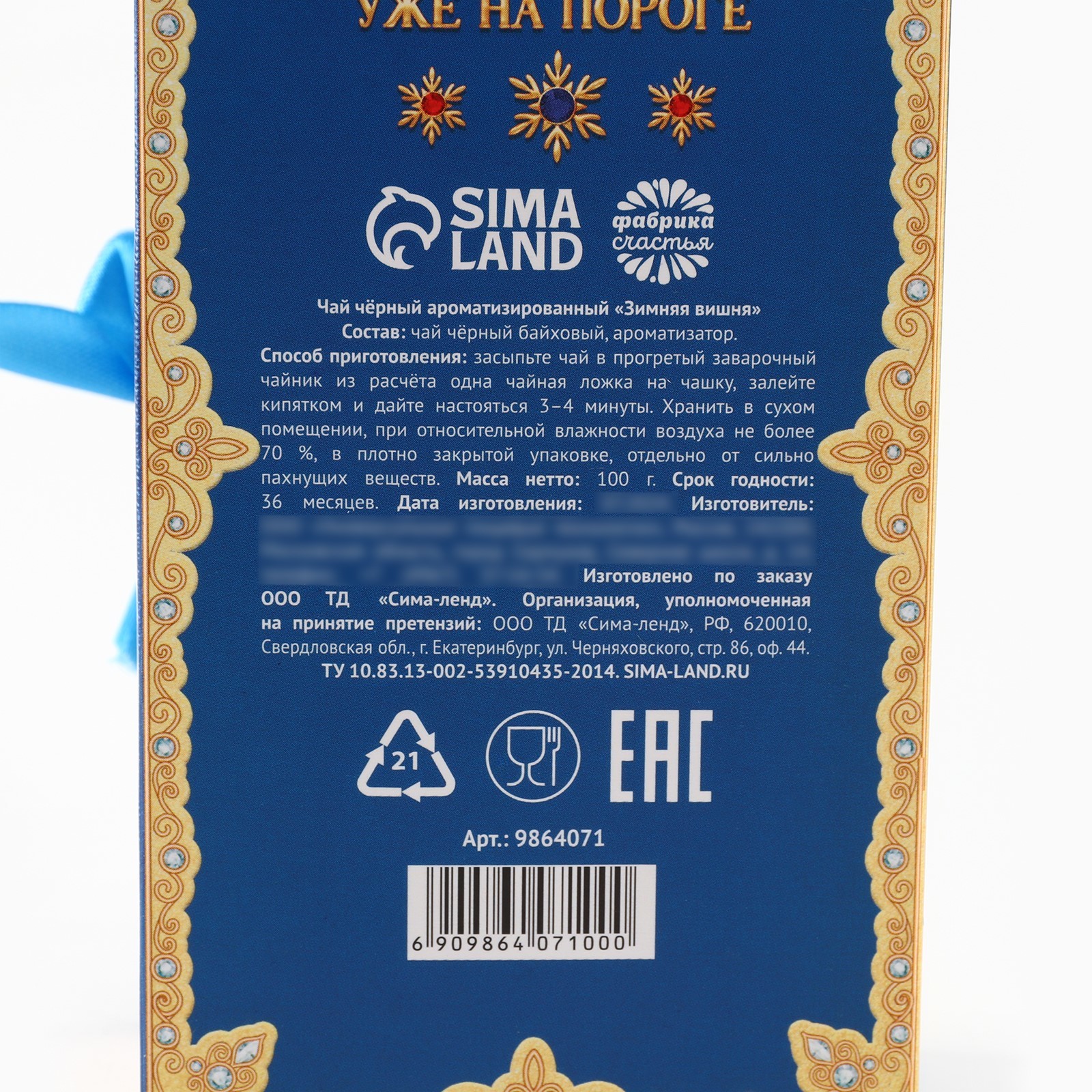 Чай новогодний чёрный «зимняя новогодняя сказка» в коробке-книге, вкус: зимняя вишня, 100 г.