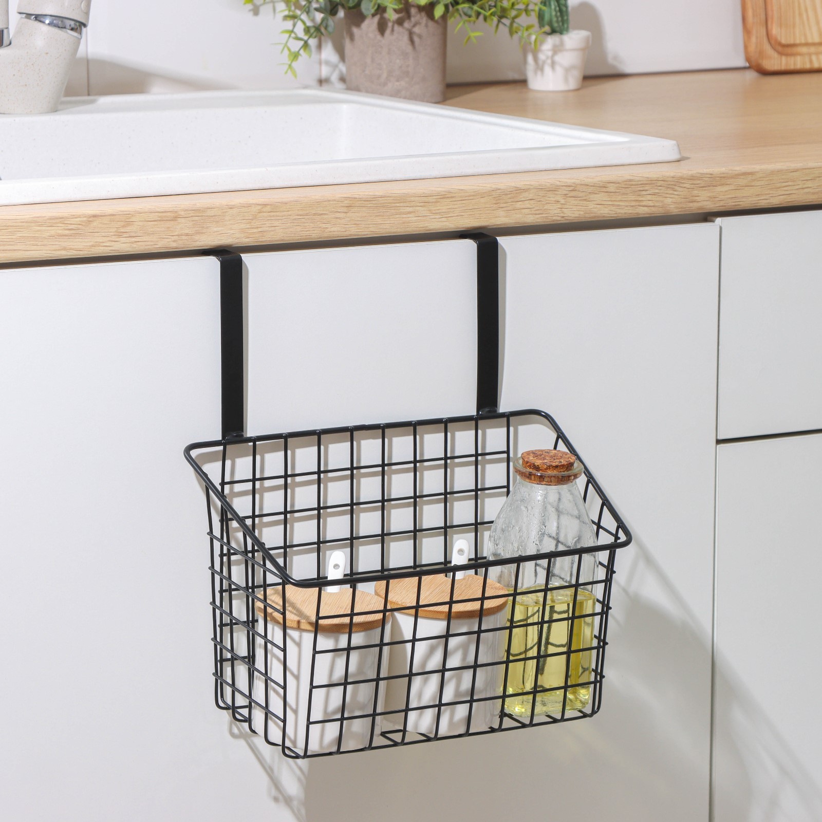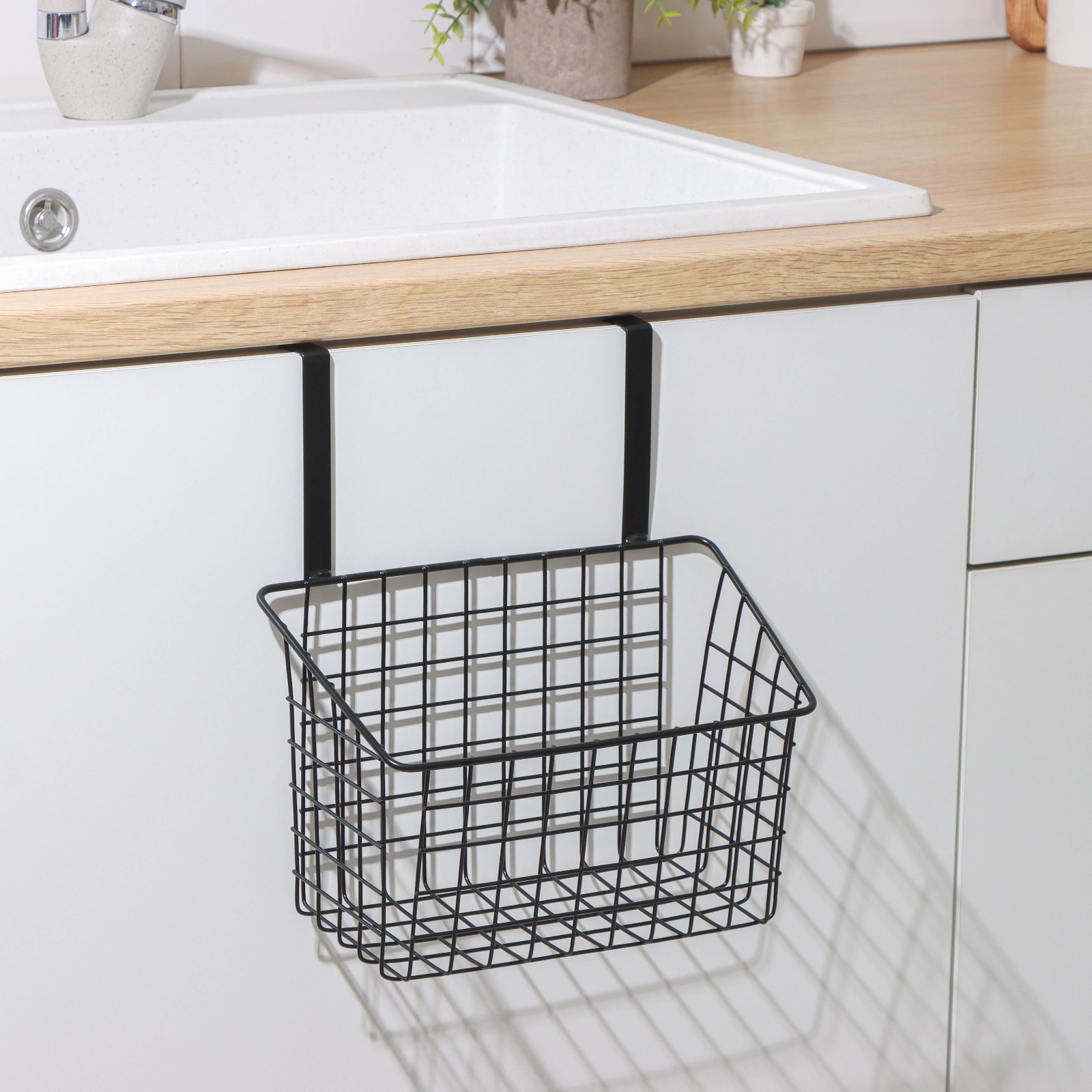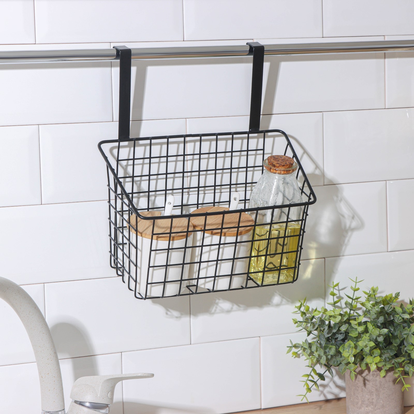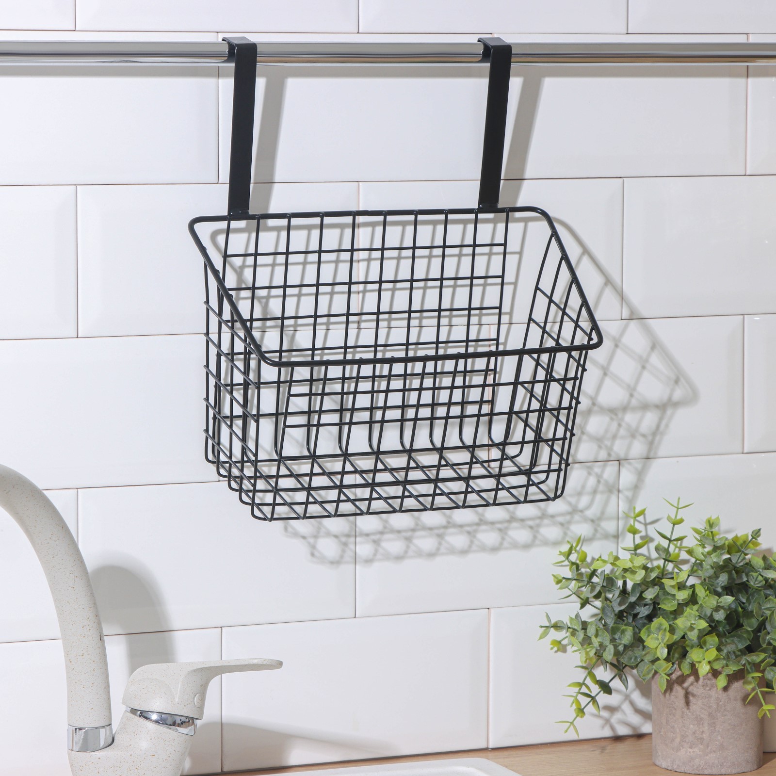 Корзина подвесная на шкаф или дверцу доляна, 26x13,5x17 см, цвет чёрный. Сетчатая навесная корзинка от торговой марки Доляна предназначена для использования дополнительной возможности расширить имеющуюся полезную площадь на кухне. Преимущества: Универсальный подвесной органайзер помогает решить проблему с ограниченным количеством мест хранения, эффективно использовать пространство в доме. Полку можно использовать для сушки и хранения посуды, продуктов, столовых принадлежностей. Её можно подвесить на стол, полку, полочку в холодильник и другие горизонтальные поверхности. Крепится без сверления, надевается на стандартную полку. Цвет: Чёрный Ширина, мм: 26 Глубина, см: 13.5 Высота, см: 17 Количество секций: 1 Материал: Металл Покрытие: Краска Угловая полка: Нет Вид: Надверный  развернуть описание ▼