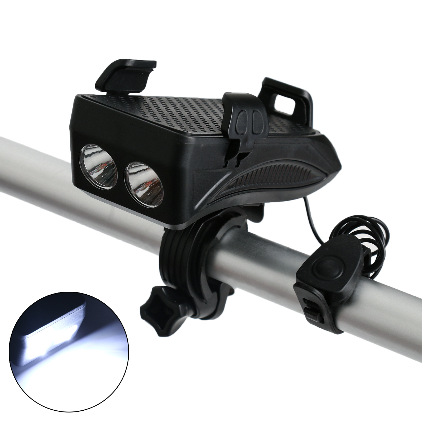Фонарь велосипедный передний аккумуляторный, водонепроницаемый, 3 режима, с сигналом. Светодиодный компактный велофонарь необходим каждому велосипедисту для передвижения в темное время суток в условиях плохой видимости. Он сделает езду безопасней и комфортней. Независимо от того, вы совершаете ежедневные поездки на работу или наслаждаетесь велосипедными прогулками по городским паркам, велофонарь станет надежным и неотъемлемым аксессуаром для вашего велосипеда. Он поможет вам быть видимыми на дороге и повысить уровень безопасности, а также добавит комфорта и удобства в ваши поездки в любое время суток. Фонарь удобно крепится на руль велосипеда с помощью зажима, способен менять свой угол наклона. Количество светодиодов: 2 Количество режимов: 3 Время автономной работы, ч: 5 Световой поток, лм: 400 Материал: Пластик Вид: Передний Влагозащита: Да Тип питания: От аккумулятора Способ зарядки аккумулятора: От USB Тип: Фонари  развернуть описание ▼