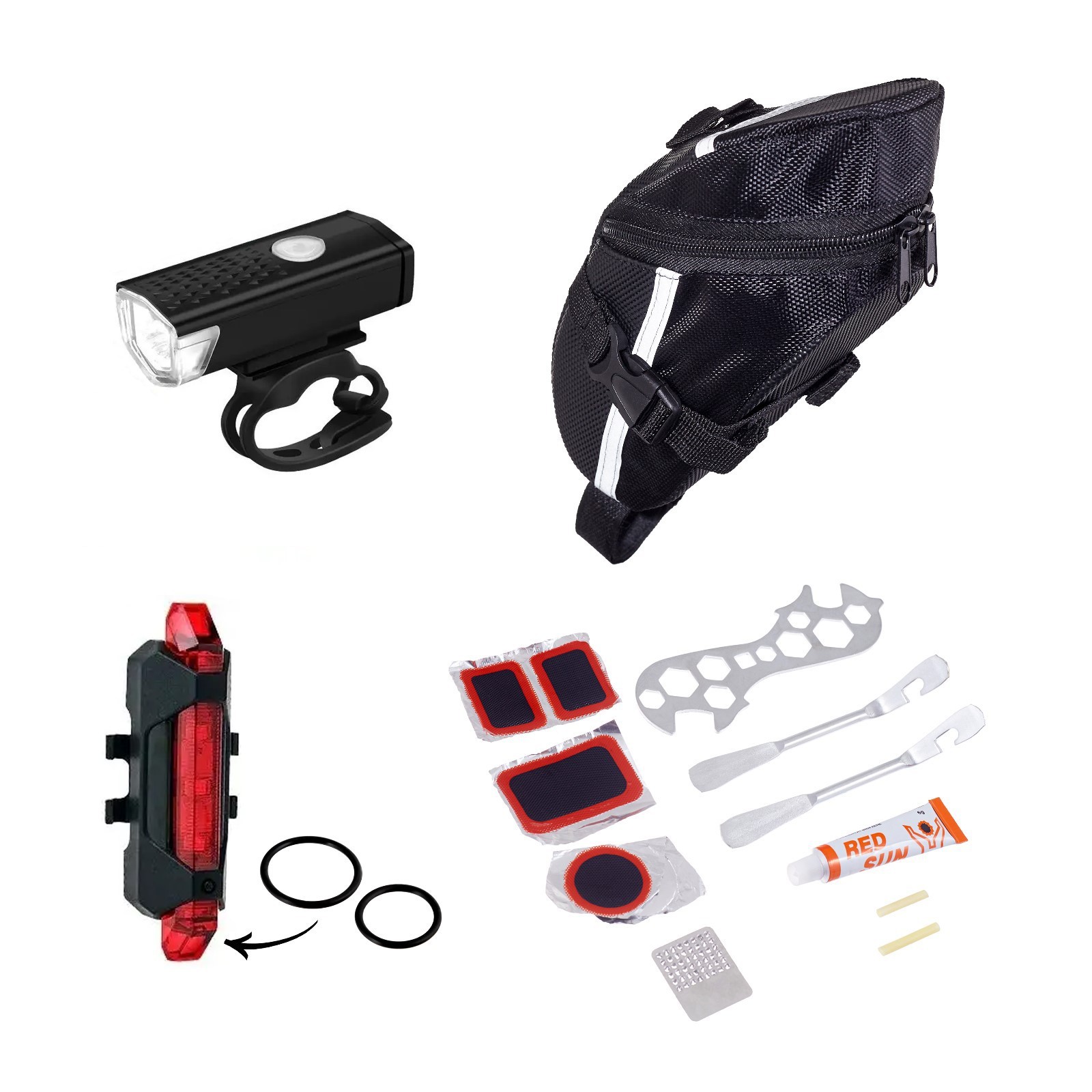 Набор для велосипеда 3 в 1: фонарь аккумуляторный, ремонтный набор, сумка