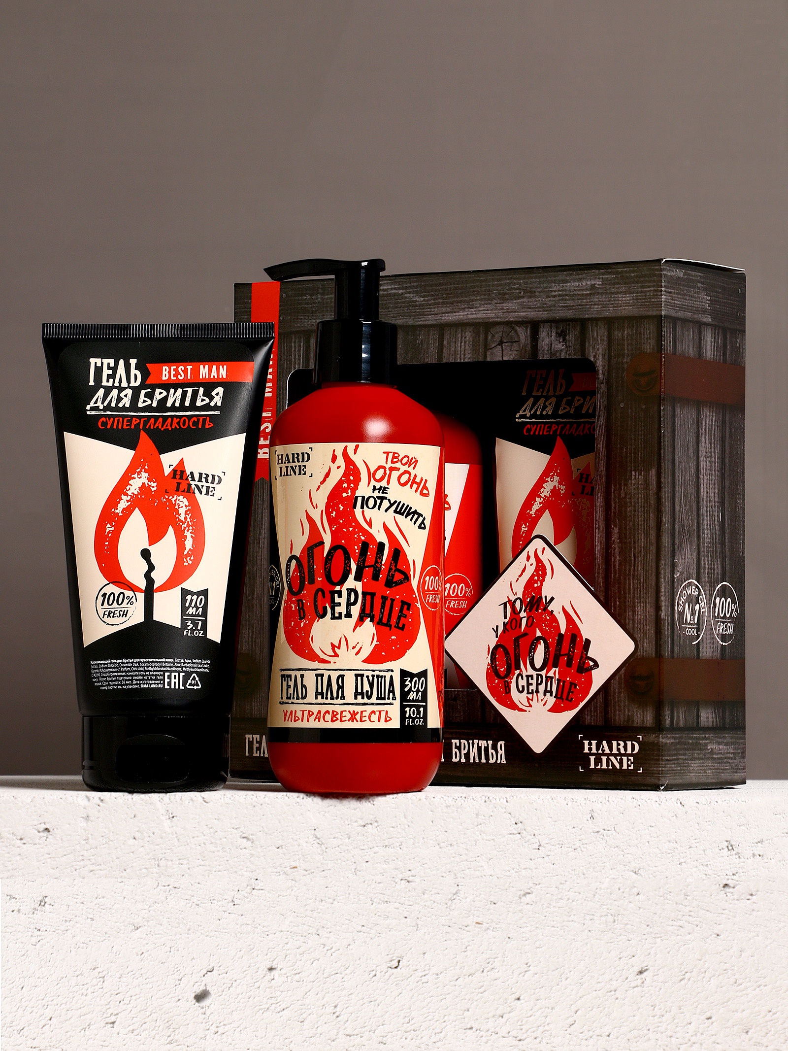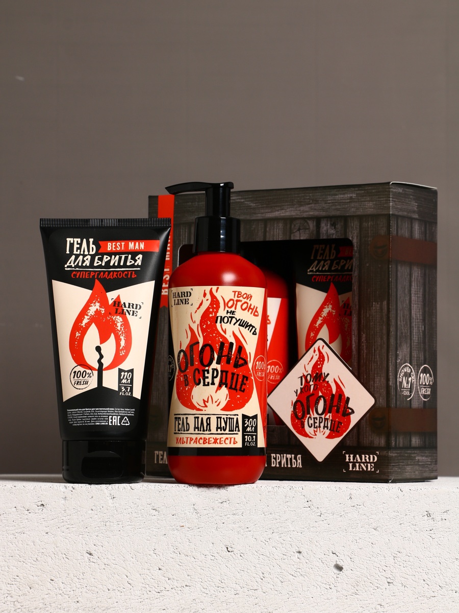 Подарочный набор косметики «тому, у кого огонь в сердце», гель для душа 300 мл и гель для бритья 110 мл, Hard Line