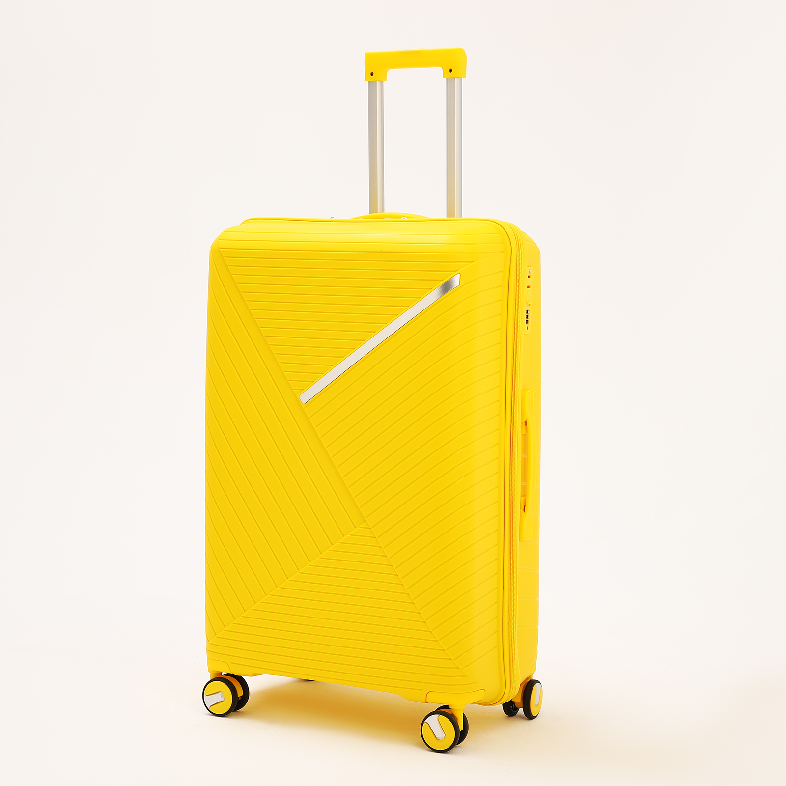 Чемодан большой 100 л (l), отдел на молнии, кодовый замок, 4 колеса, цвет жёлтый. Цвет: Жёлтый Количество колёс: 4 Возраст: Взрослый Материал: Пластик Размер: 28" (L) Дополнительный объём: Без увеличения Вид пластика: ABS-пластик Каталог ВБ: Да  развернуть описание ▼