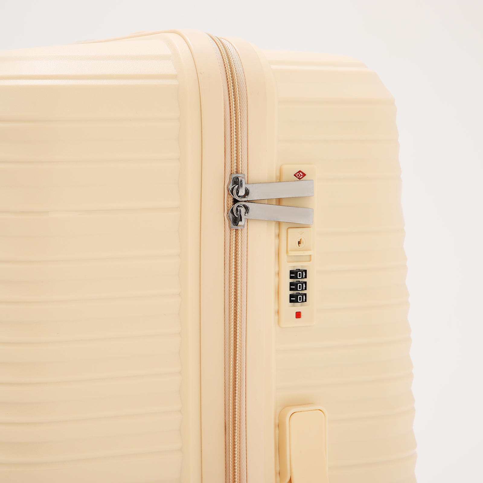 Чемодан большой 100 л (l), отдел на молнии, кодовый замок, 4 колеса, цвет бежевый