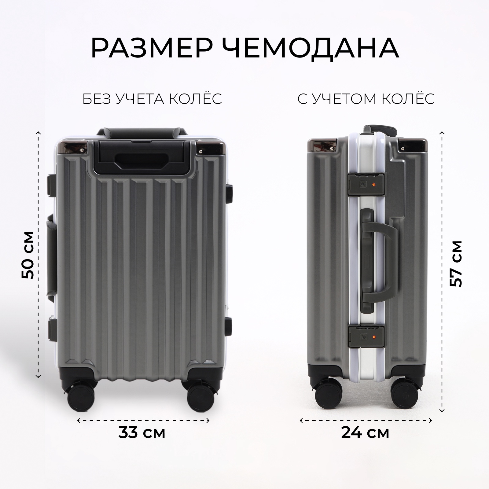 Чемодан малый 37 л (s), отдел на молнии, 2 кодовых замка, 4 колеса, крючок, цвет серый