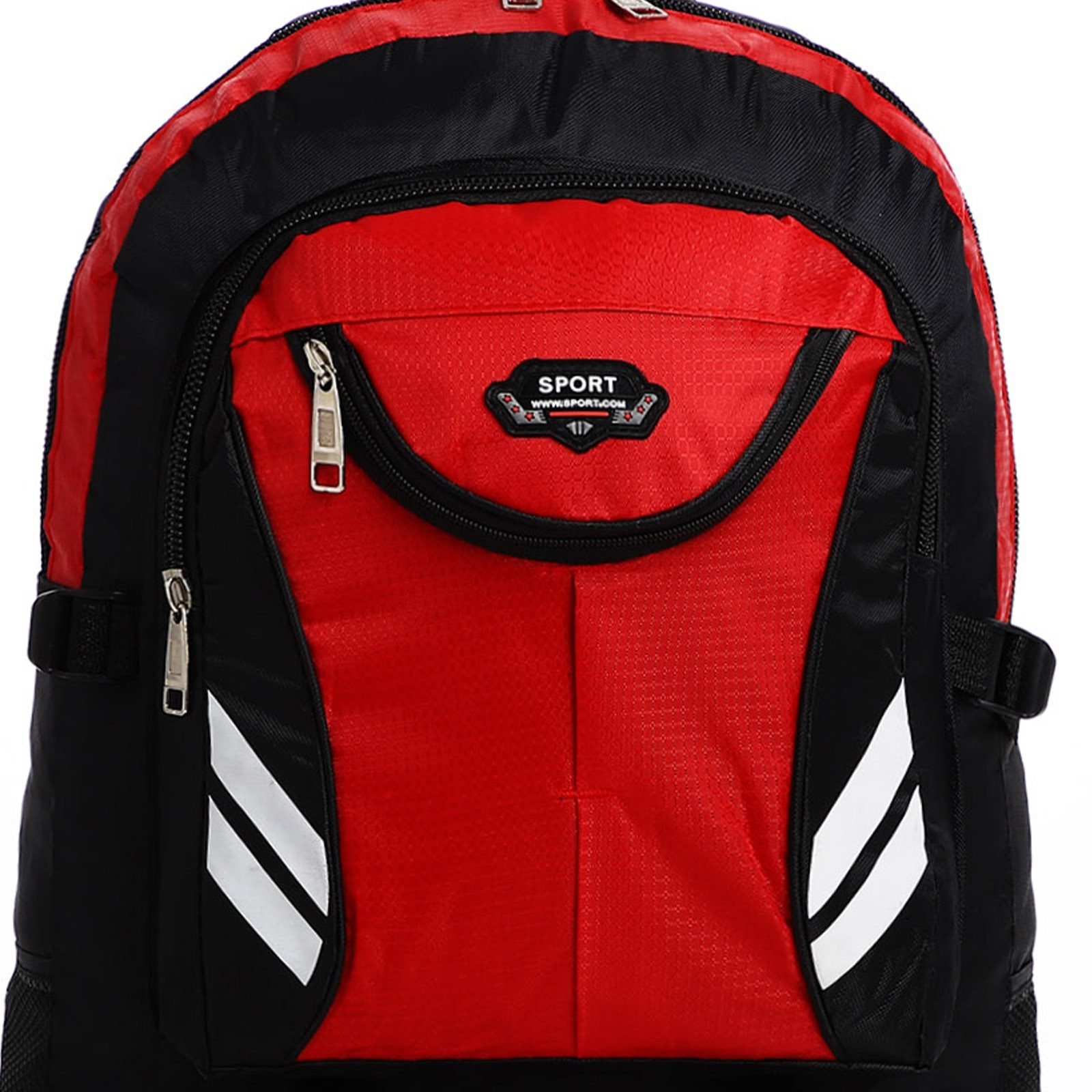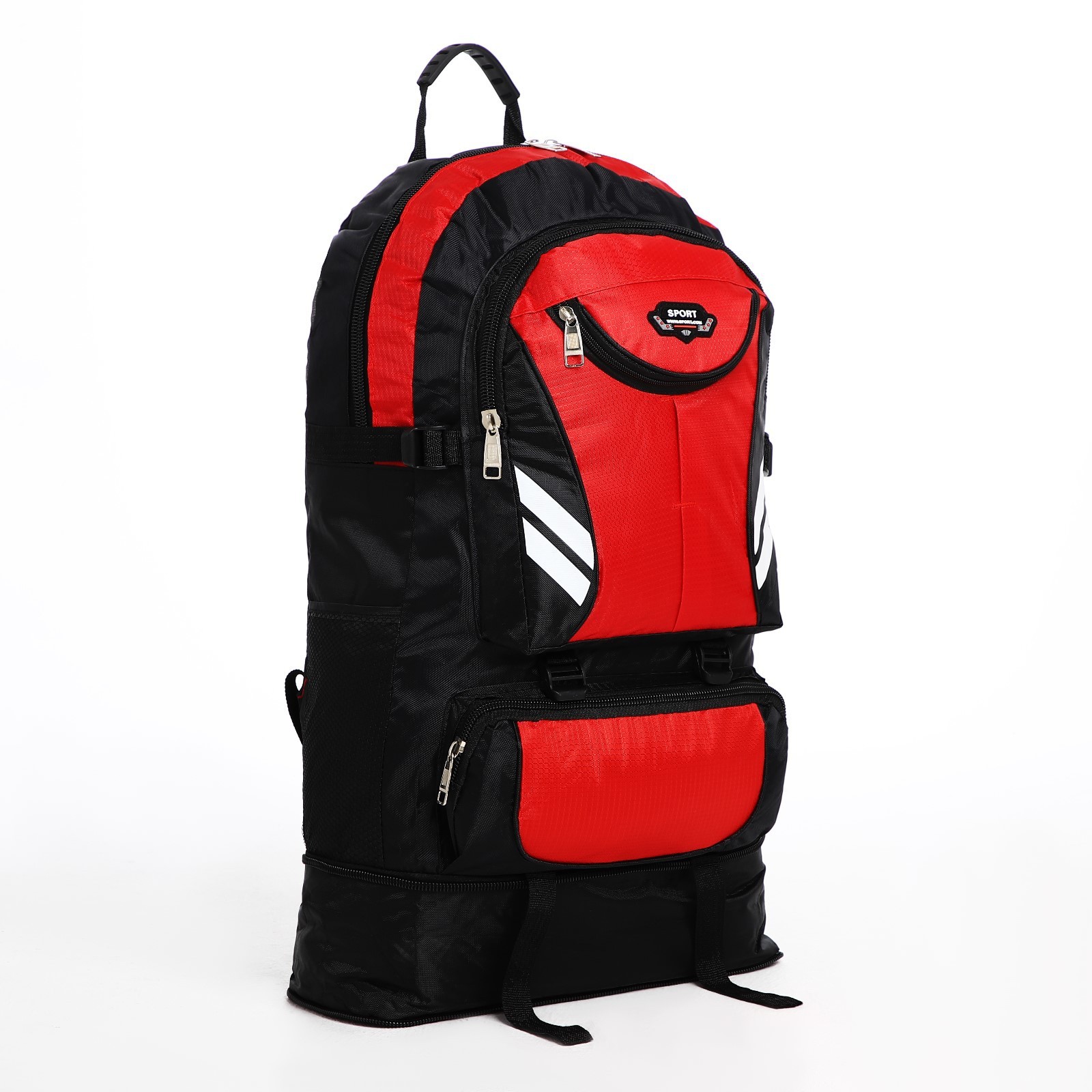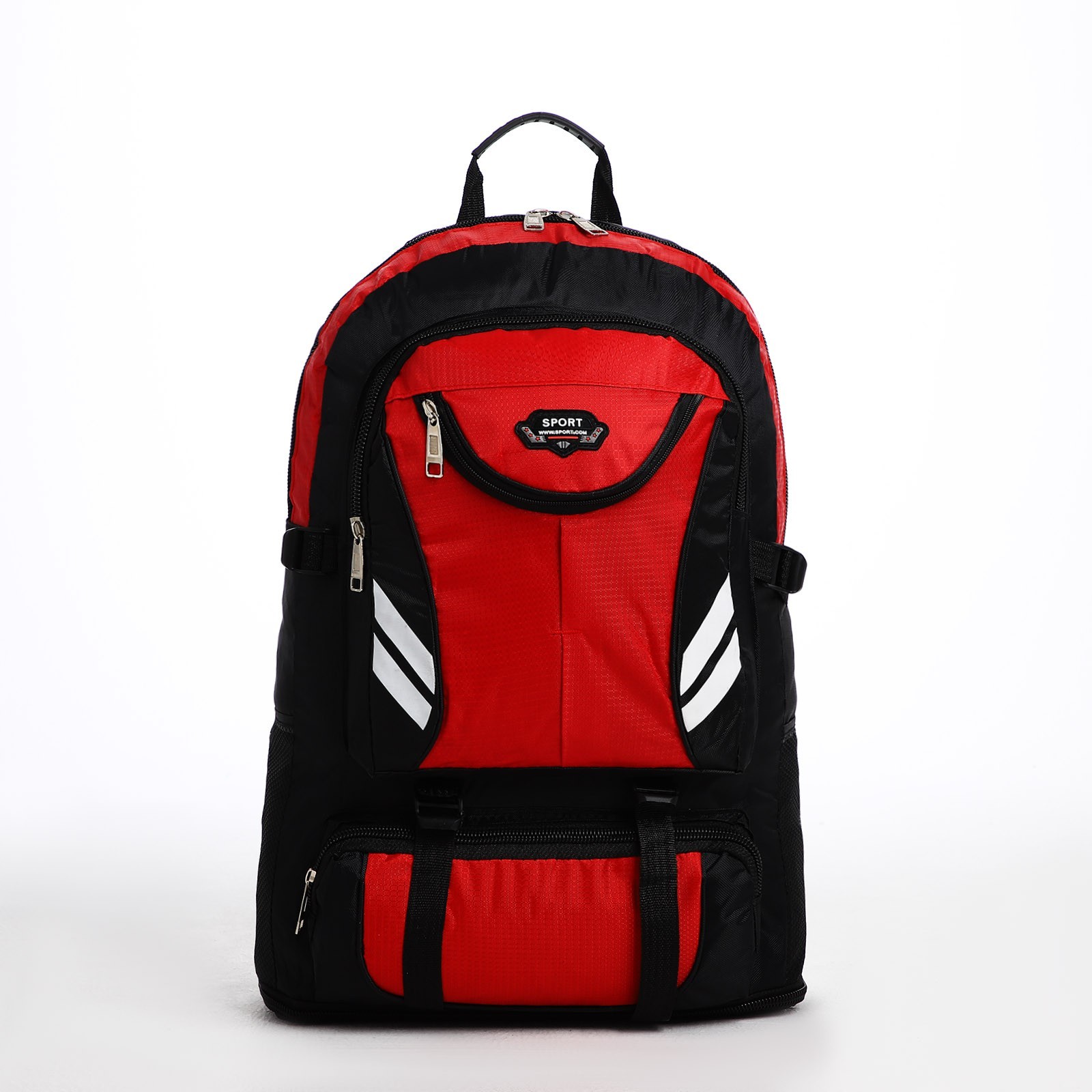 Рюкзак туристический на молнии, 4 наружных кармана, цвет красный/чёрный