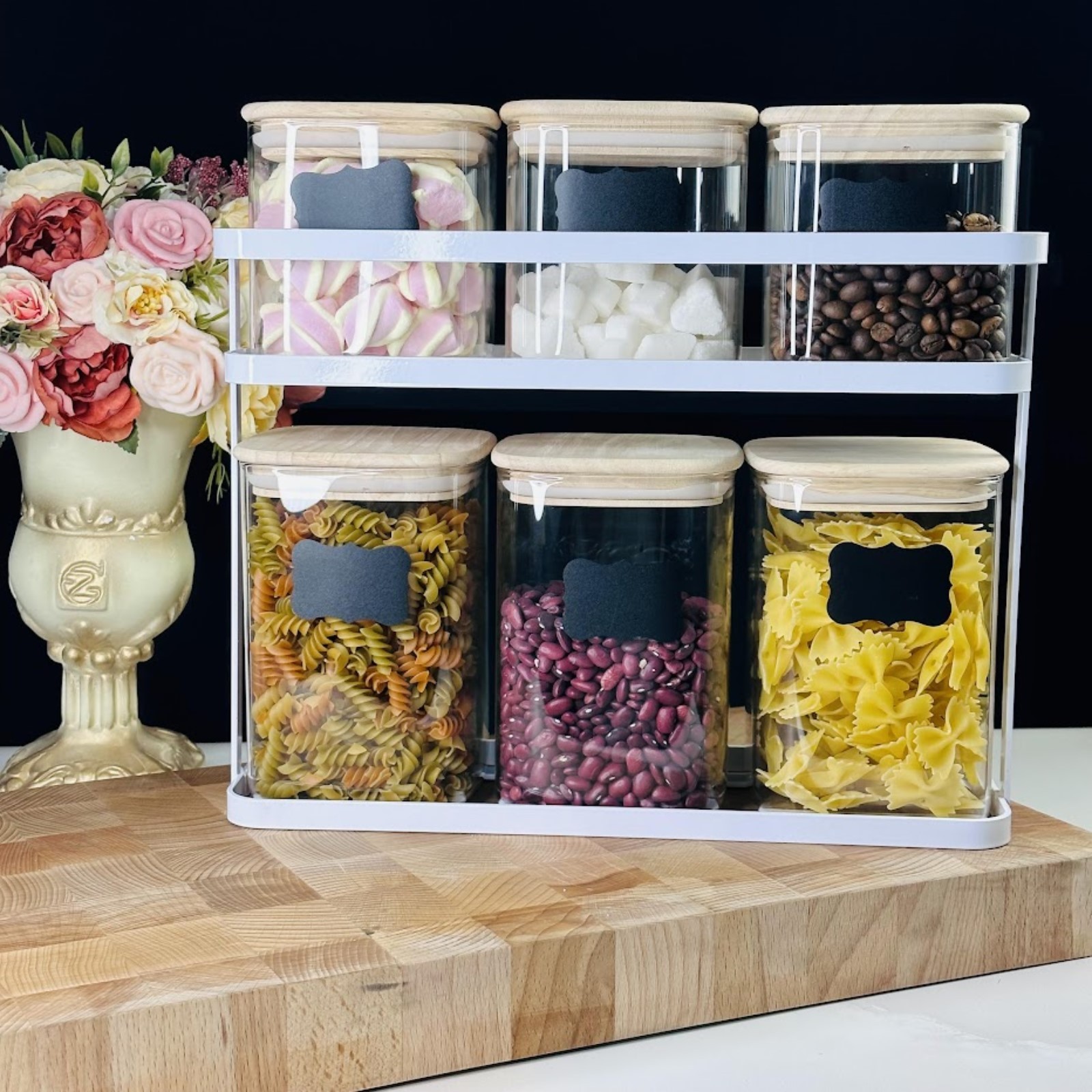 Набор банок для сыпучих продуктов Lenardi, на подставке, 6 шт