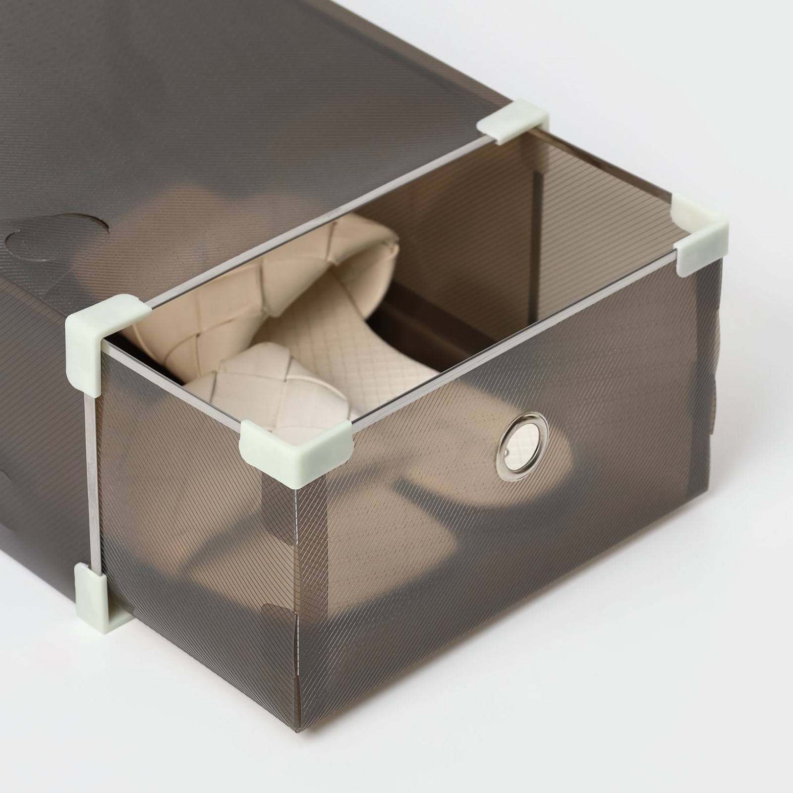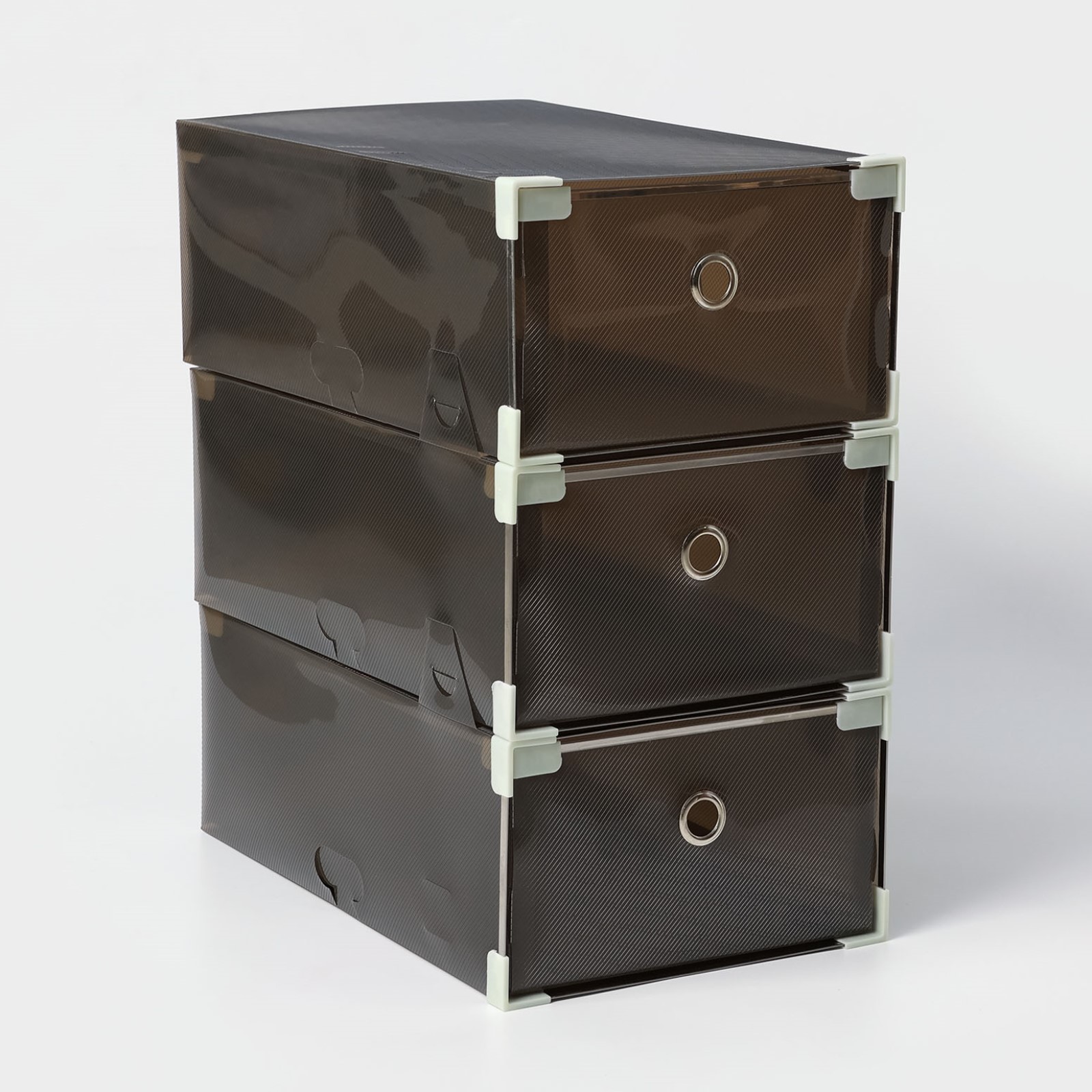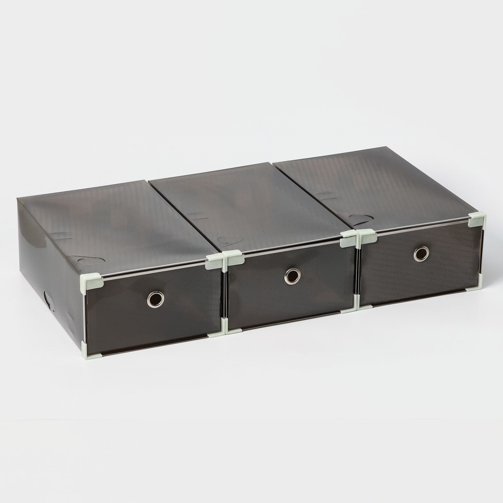 Коробка для хранения обуви выдвижная доляна Large Size, 22x34x13 см, 3 шт, цвет черный