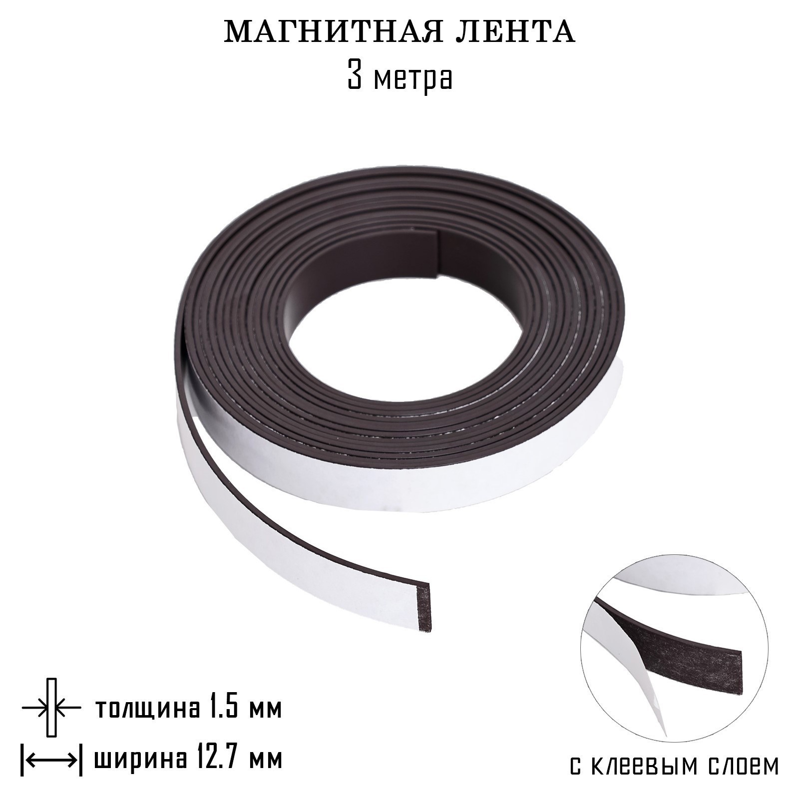 Магнитная лента с клеевым слоем, take it easy, 3 метра, толщина 1.5 мм, ширина 12.7 мм. Магнитная лента с клейким слоем – практичное и удобное решение для дома и офиса. Благодаря гибкому винилу, магнитная лента легко приспосабливается к различным поверхностям, предлагая лёгкость установки и применения. Почему стоит выбрать этот продуктx Простота использования: отрезайте нужную длину, прикрепляйте на поверхность и начинайте использовать прямо сейчас.Универсальность применения: подходит для крепления лёгких предметов, организации кабелей и даже создания магнитных досок.Клейкий слой: обеспечивает надёжную фиксацию, не требуя дополнительных инструментов.Тонкость и гибкость: лента толщиной 1.5 мм не займет много места и легко гнётся, не теряя магнитных свойств.Экономичное решение: трёхметровый рулон позволяет использовать ленту в различных проектах и для множества задач.Практические советы по использованию Если вы хотите упорядочить рабочее пространство или создать креативные декорации, магнитная лента станет вашим незаменимым помощником. С её помощью можно сделать стенды для заметок, держатели для ножей на кухне, или даже создать на стене галерею из фотографий, легко меняя их расположение. Гибкость применения и надёжность крепления – основные преимущества магнитной ленты с клейким слоем. Это инструмент, который точно стоит добавить в ваш комплект необходимых вещей для дома. Оцените удобство и многофункциональность этого простого, но полезного продукта в быту и работе! Форма:Прямоугольная|Материал:Магнит|Материал:Винил|Тип :Ферритовый|Страна:Китай  развернуть описание ▼