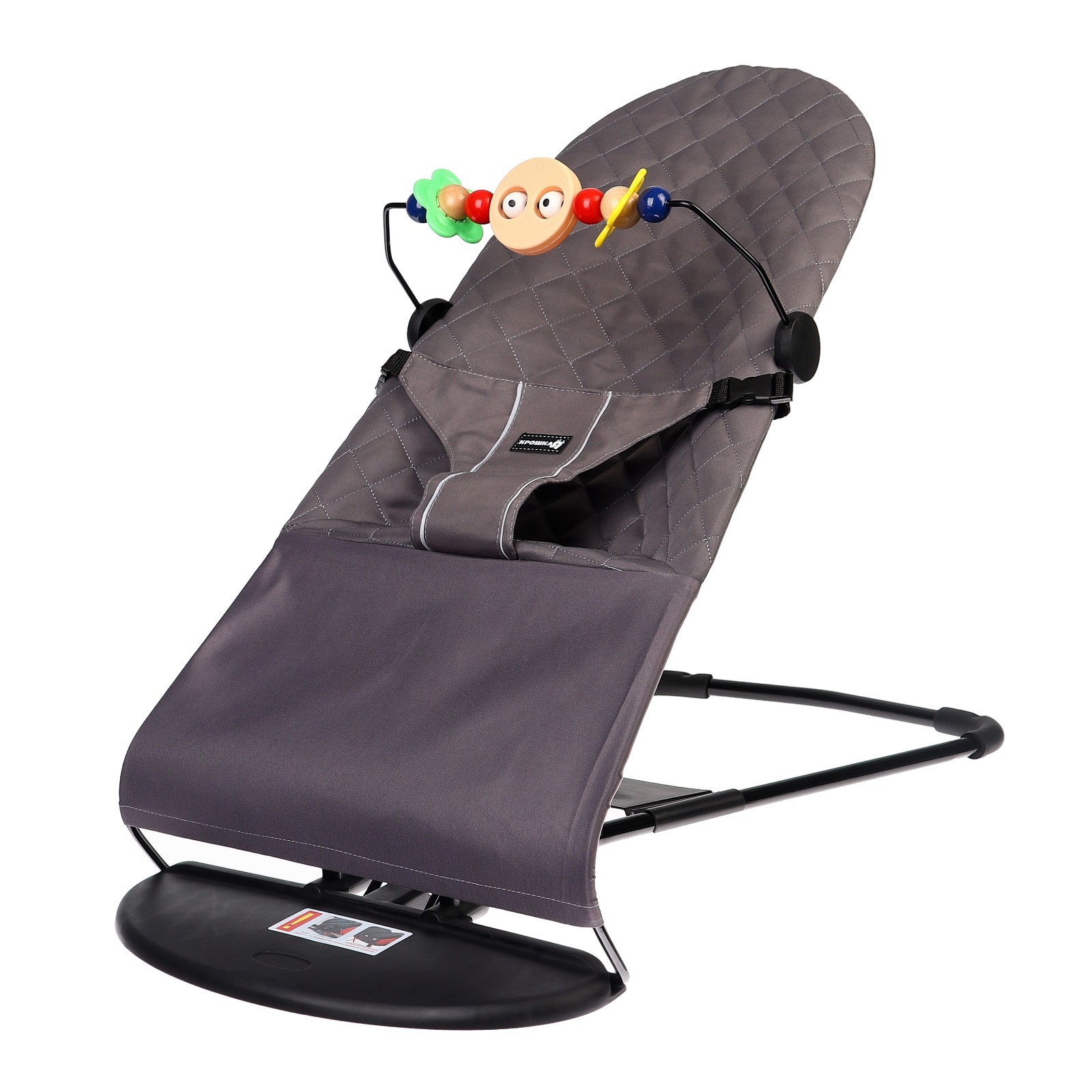 Шезлонг детский, кресло - качалка с игрушками для новорождённых «крошка я», серый