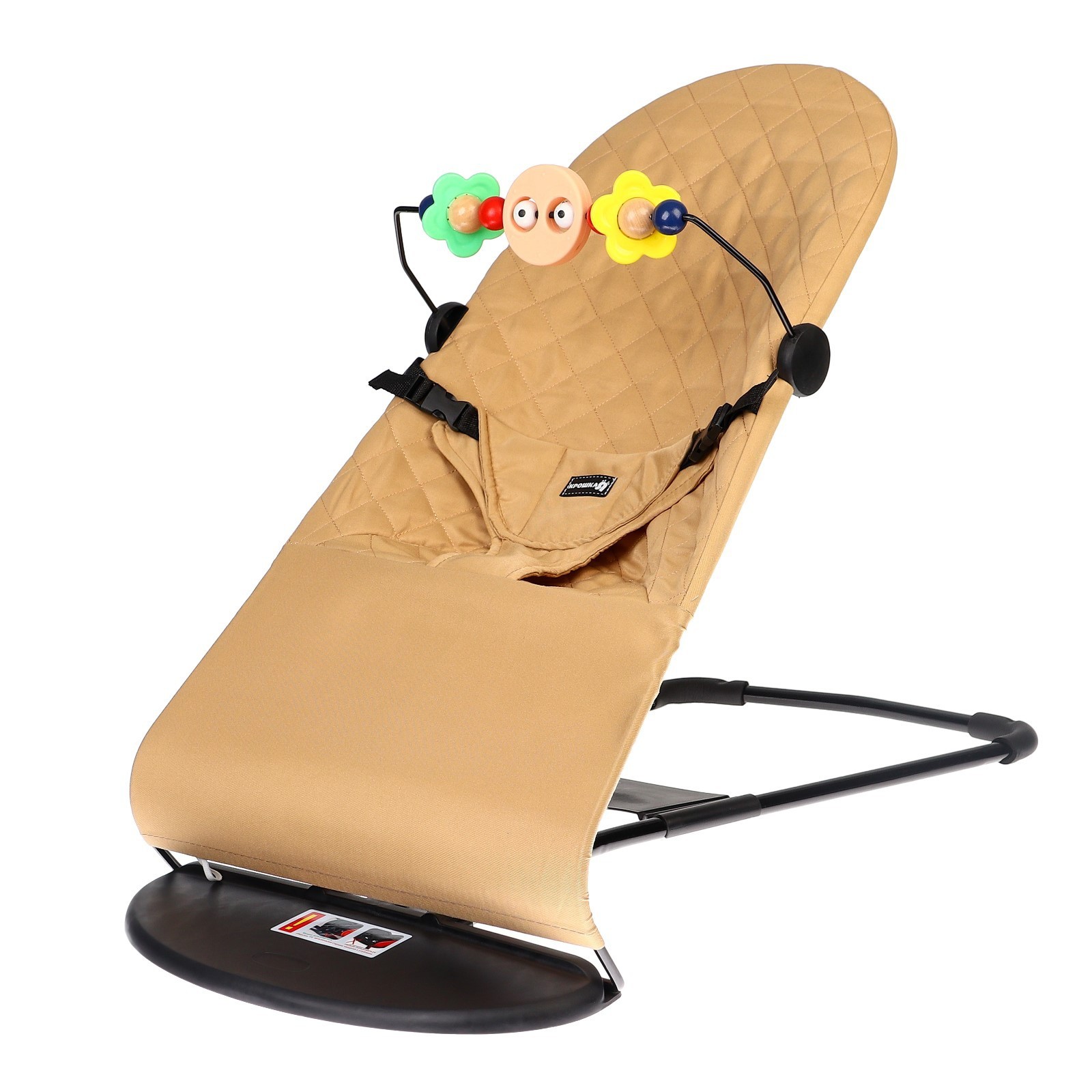 Шезлонг детский, кресло - качалка с игрушками для новорождённых «крошка я», бежевый