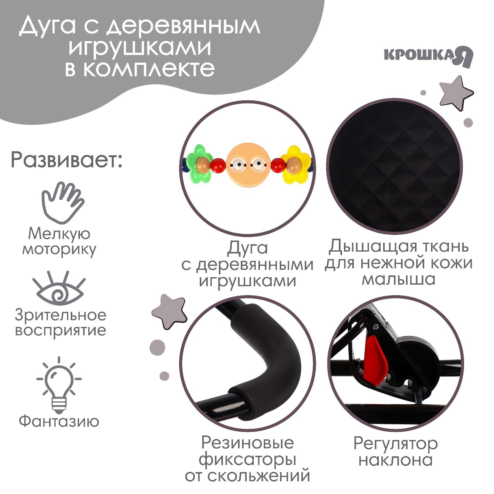 Шезлонг детский, кресло - качалка с игрушками для новорождённых «крошка я», цвет чёрный