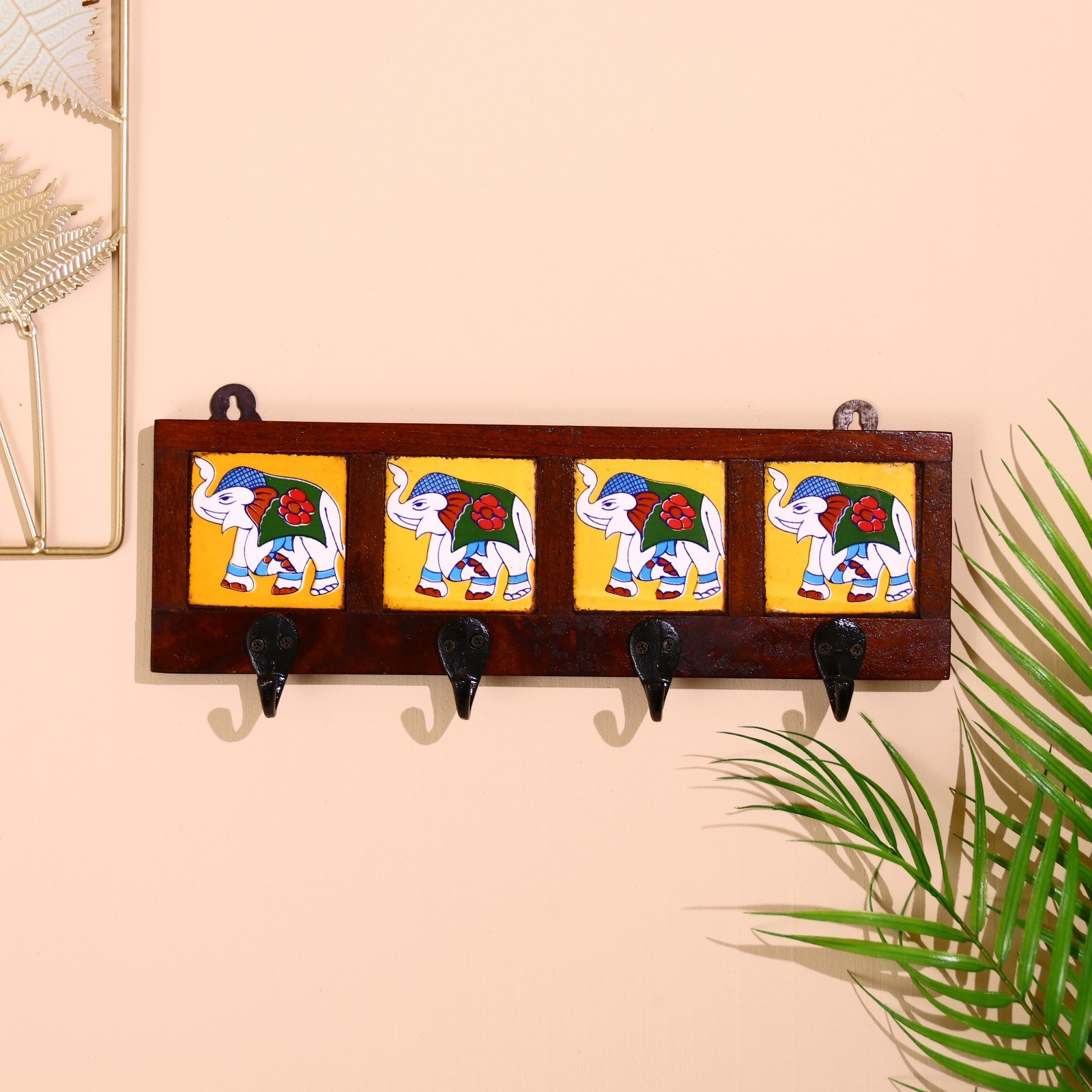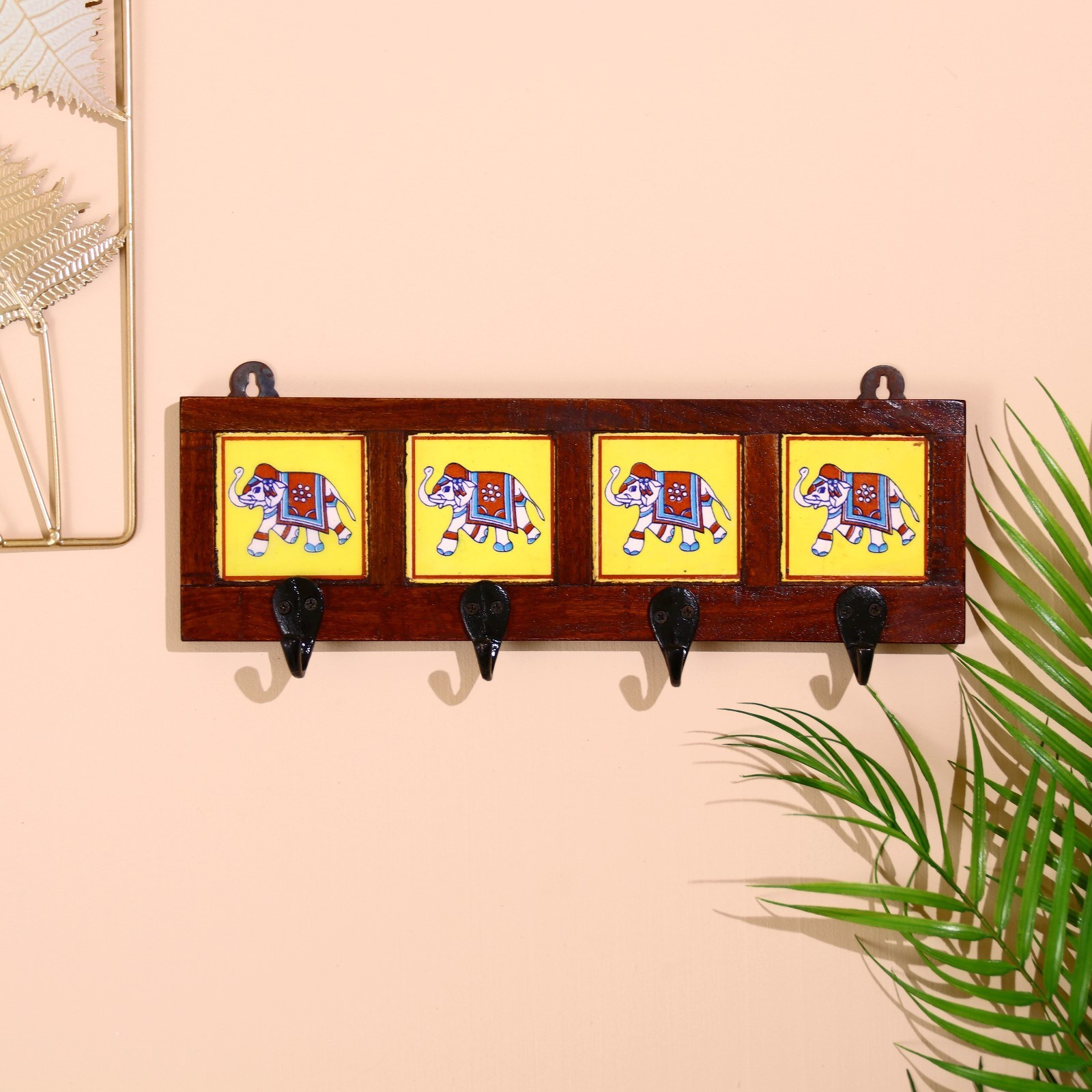 Вешалка "караван"слоны, 22*4*12см, дерево, 4 крючка, цвет микс
