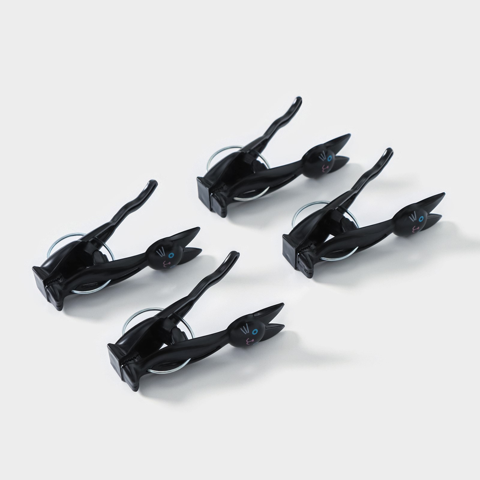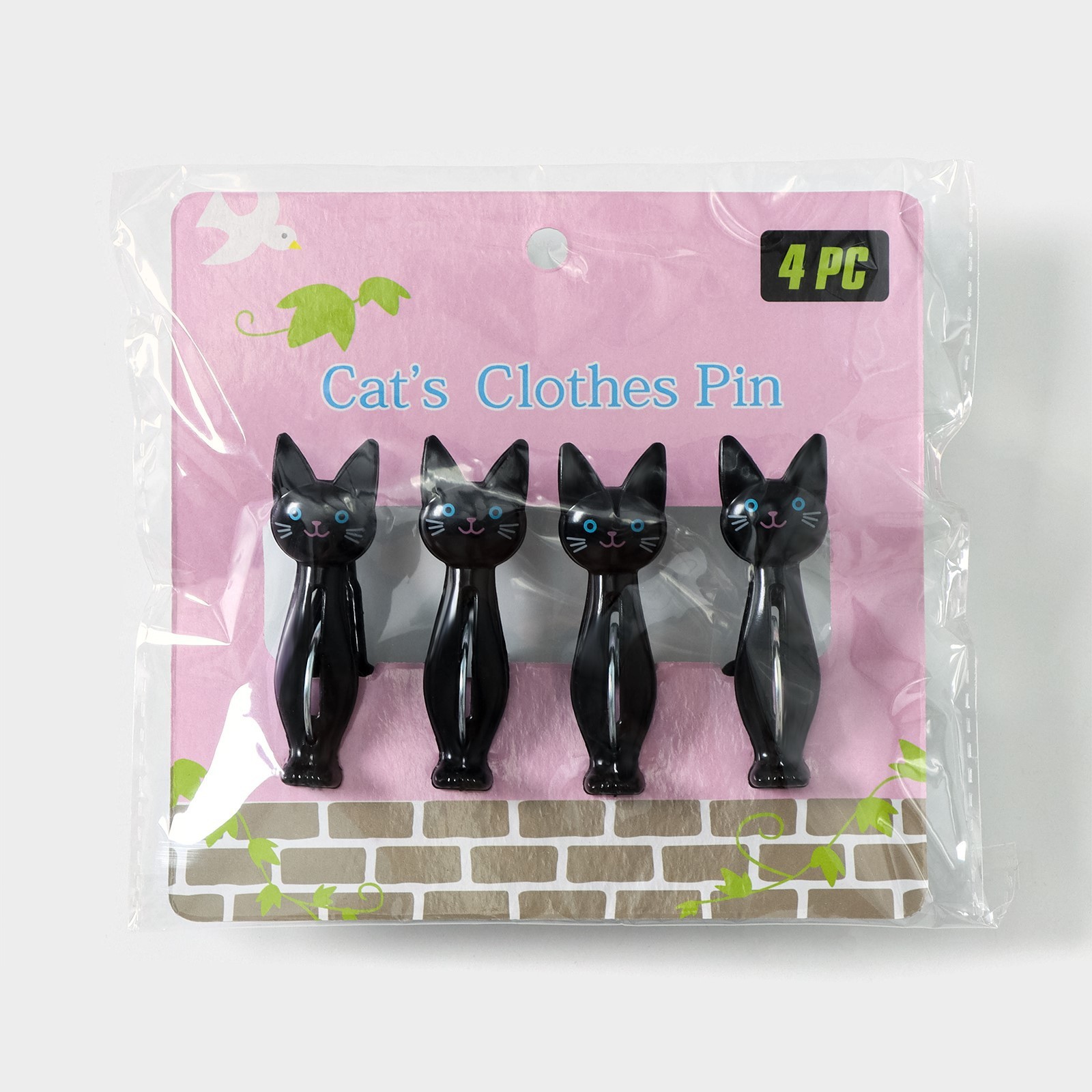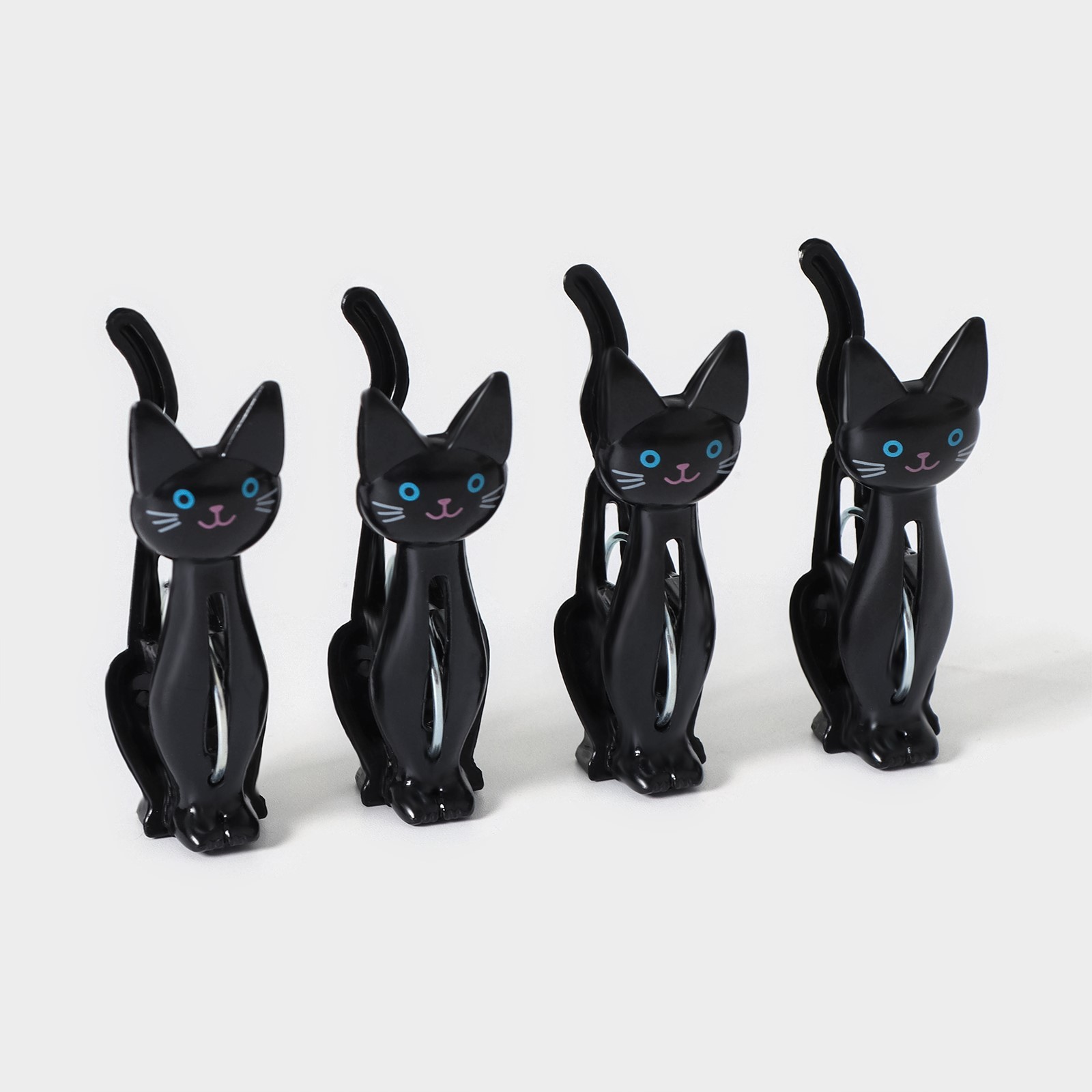 Набор прищепок «коты», 4 шт, 7x2x4 см, цвет чёрный. Бельевые прищепки - это маленькие, но незаменимые товары для дома, дачи или пляжа. Они могут использоваться для крепления белья, полотенец, штор, тканей и других вещей на веревке, вешалке или сушилке. Преимущества: Кроме того, бельевые прищепки могут использоваться в качестве держателей для пакетов, щеток и других мелких предметов. Прищепки бельевые изготовлены из высококачественного пластика, пружина из стали. Цвет: Чёрный В упаковке, шт.: 4 Материал: Пластик  развернуть описание ▼